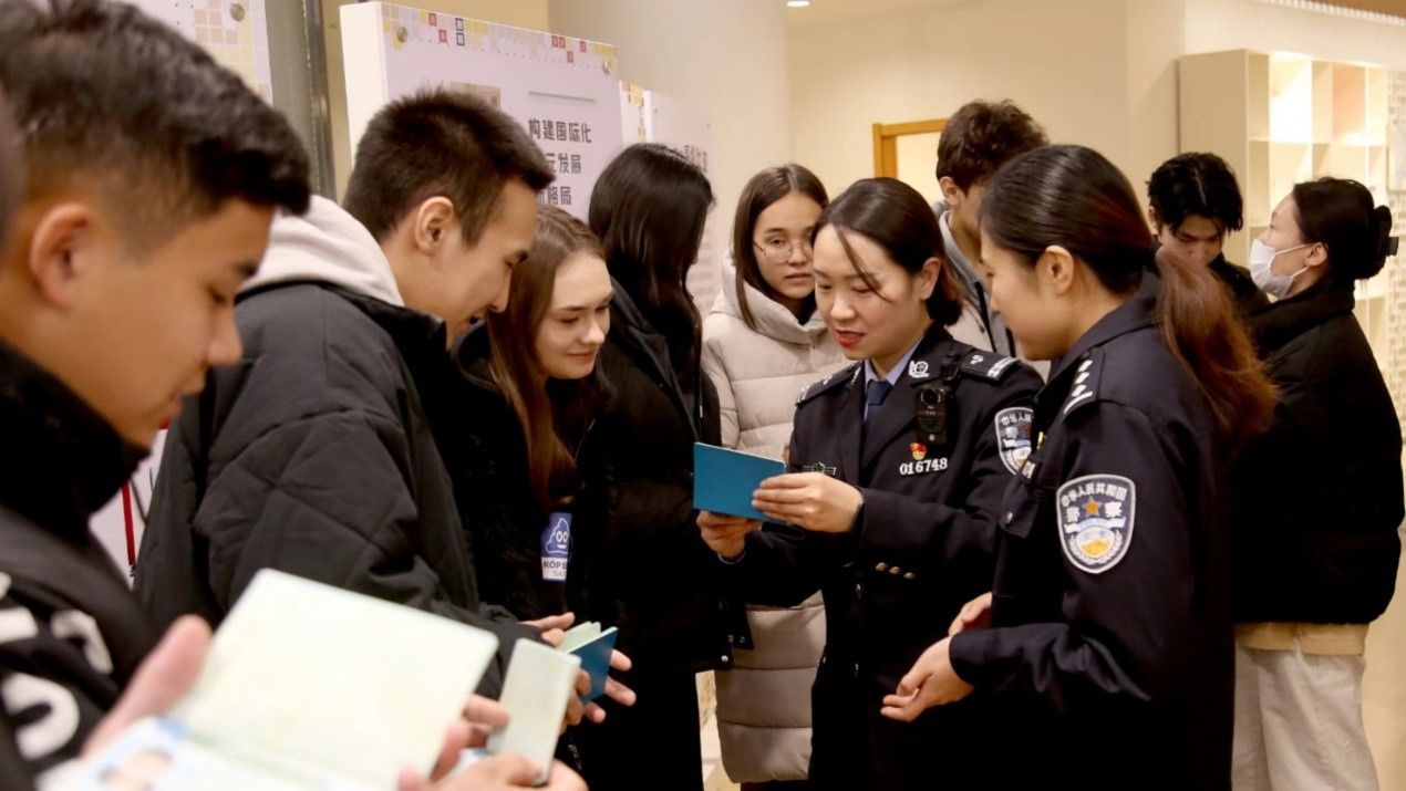 2023年9月以来,鸭脖国际处、西安市公安局出入境管理科与新筑派出所的工作人员助力始终秉持着服务留学生合法在华出行,无忧在校生活的原则,陆续接待咨询、办理留学生入境后临时住宿登记及居留许可等相关手续43人次。此次冬日送暖上门来鸭脖,为刚入学的23名哈萨克斯坦籍、老挝籍留学生递送已经受理的外籍人员在华居留证件。