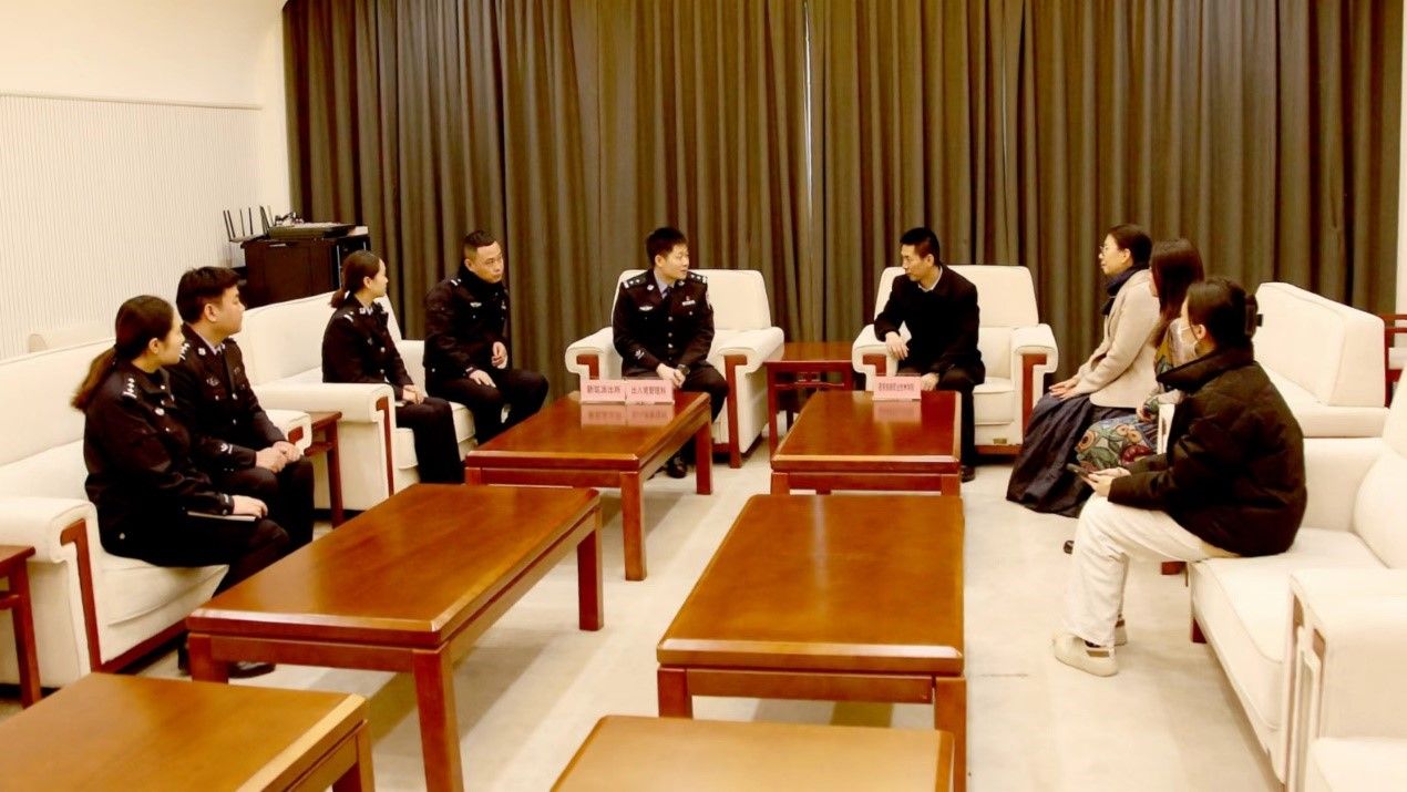 1月16日上午,西安市公安局灞桥分局出入境管理科科长乔煜及相关民警、新筑派出所教导员李鹏、新筑派出所户政所长梁迪及相关民警一行7人来访鸭脖为留学生送证上门,并就留学生服务与管理,校警合作建设平安校园开展座谈,鸭脖国际交流与合作处处长仵崇智、副处长靳丽君、科长王晓帼及相关工作人员参与。