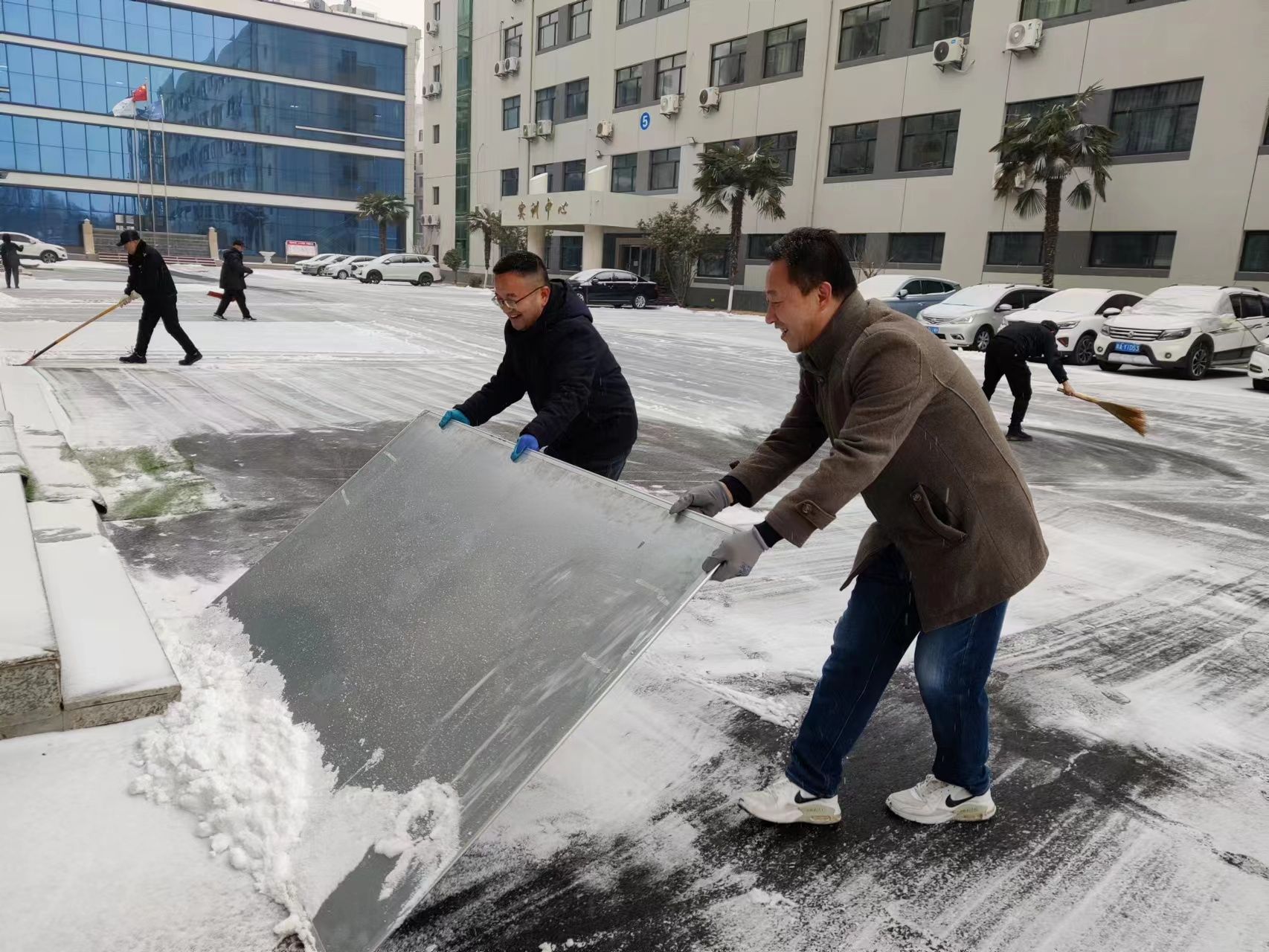 瑞雪纷飞映灯彩,照亮学子好前程。2日早晨一场大雪突然降临,校区紧急组织扫雪,随下随扫,杜绝地面结冰,保障学生出入安全。