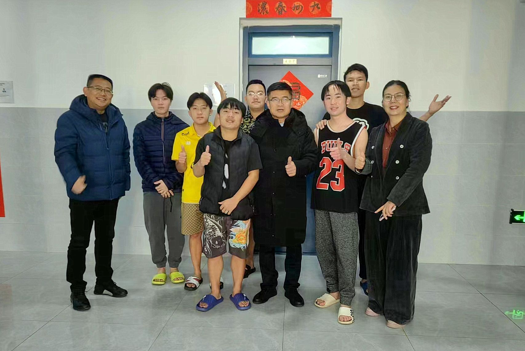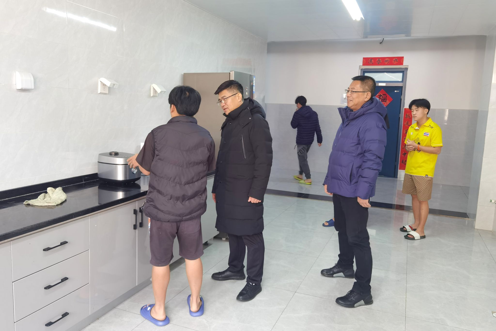 看望中,看到老挝留学生穿着短袖,赵春平亲切地叮咛他们多穿衣服,注意保暖,预防感冒,并安排后勤处为留学生配备好常用药品,保证留学生过一个健康、快乐、充实的中国年。