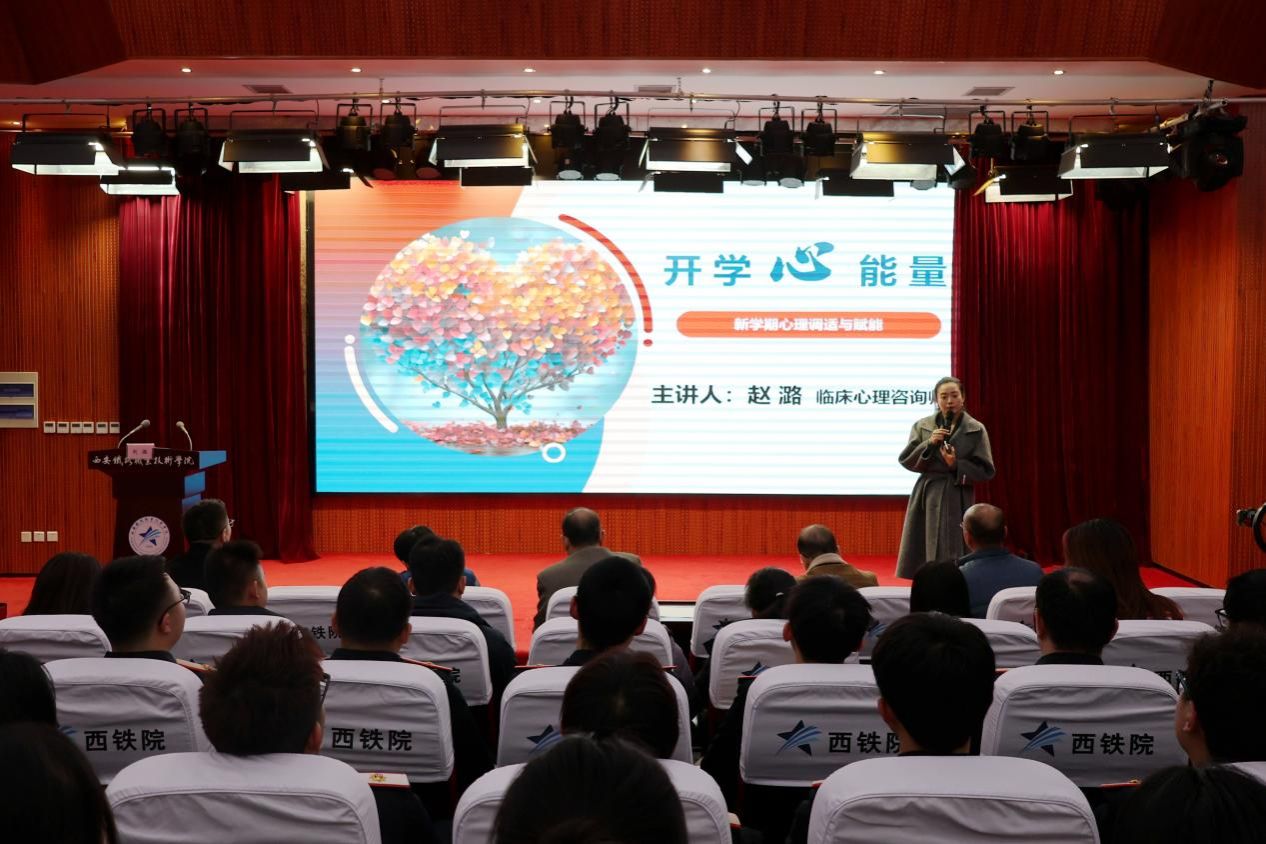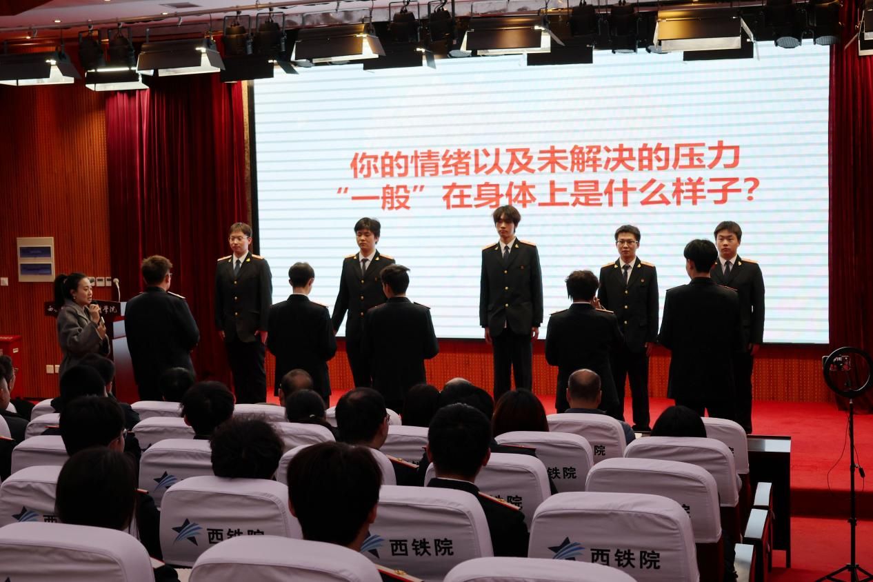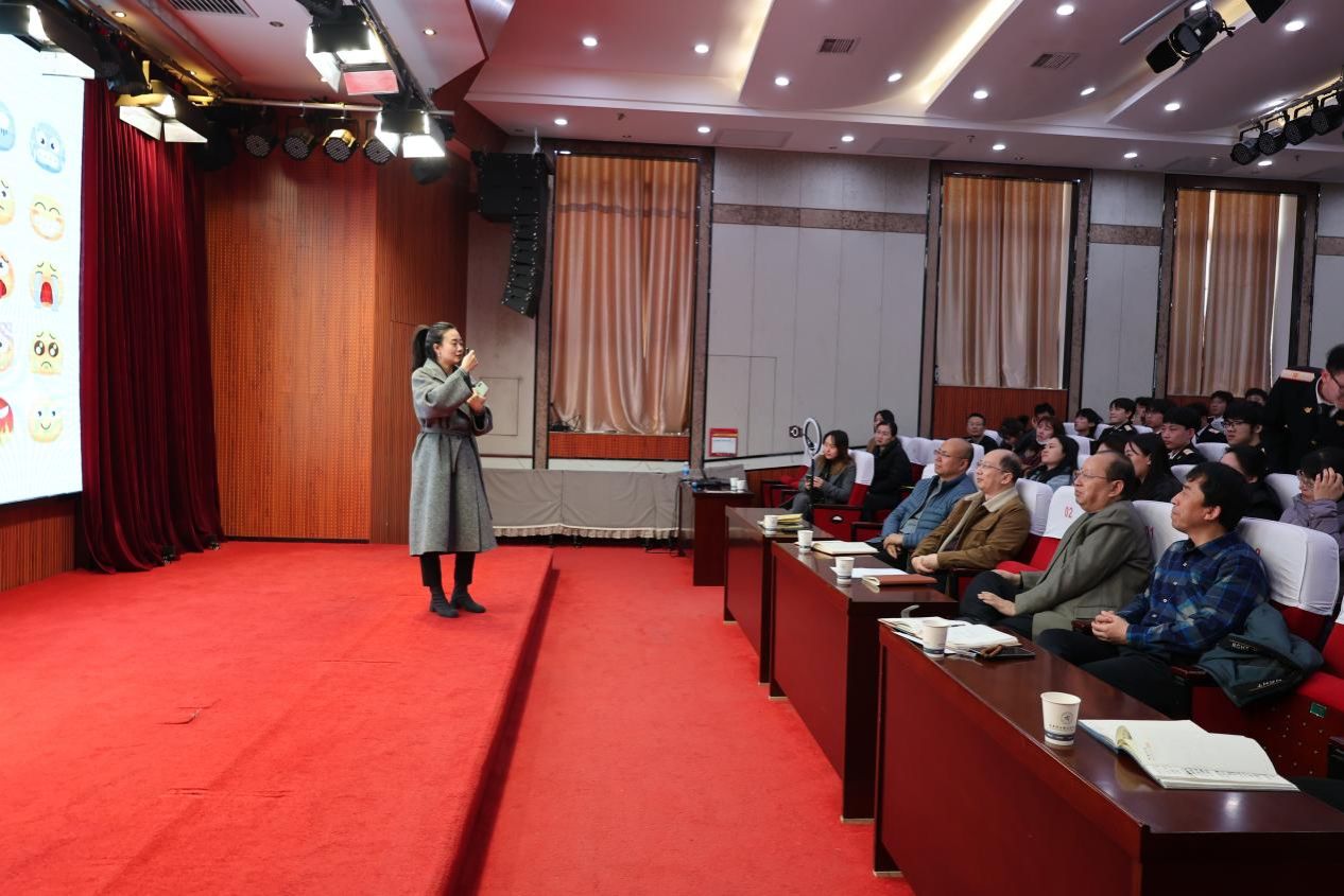 赵潞以“情绪接龙”活动的轻松开场,向学生展示了人体“情绪地图”的分布,用直观生动的方式解读了情绪密码;借助萨提亚的“冰山理论”科普了个体承压的不同表现、常见的减压误区及高效减压的科学方式,带领在场师生对比体验了高低能量姿态带来的心理感受。在讲述“如何降低内耗”时,结合鸭脖专业特色,类比西安地铁规划线路,介绍了神经回路的可塑性和“刻意练习”对改变大脑通路的积极作用。赵潞以大学生日常生活小事为例,依据CBT认知行为疗法的核心观点,帮助学生识别了常见的自动化负面思维,为沟通和自我疗愈创造可能性空间。最后,以积极心理学的视角为学生提供提升自爱力的途径,鼓励学生回收心理能量,以爱育心,将自我关怀的理念用于实践,给予自己最强大的支持。
