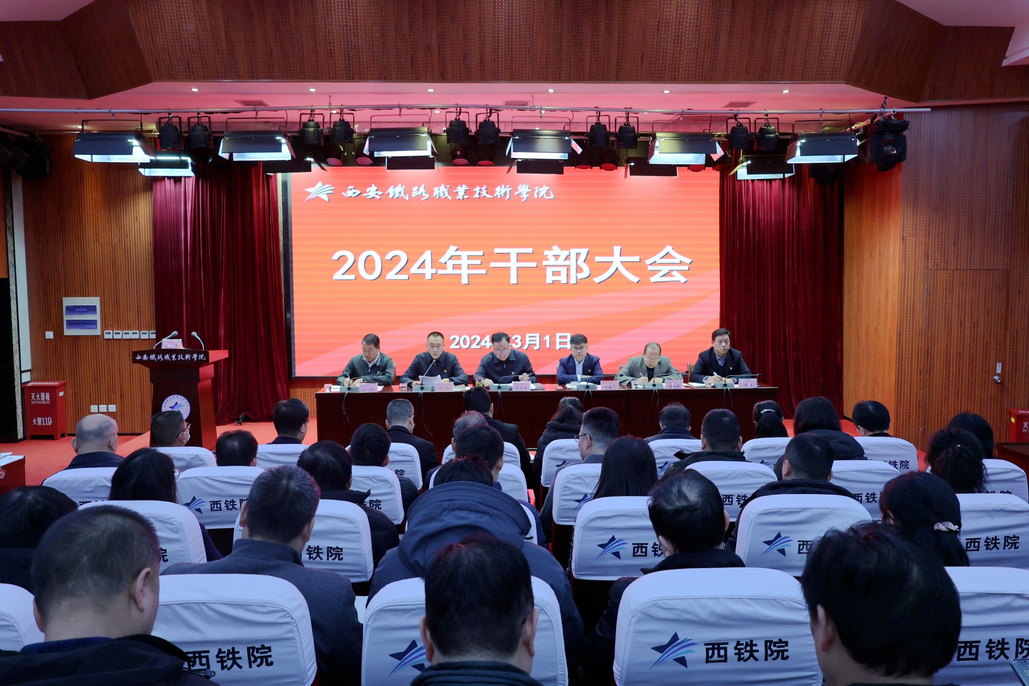 3月1日,学院在港务校区一楼报告厅召开2024年干部大会,传达学习全省深化“三个年”活动暨招商引资推进会、2024年陕西省教育工作会议及2024年全市“八个新突破”重点工作动员部署会议精神,回顾总结学院2023年主要工作和取得的成绩,科学分析当前面临的形势和任务,安排部署2024年重点工作。党委副书记、纪委书记邓轩主持会议。院长赵春平安排部署2024年工作,党委书记施利民作总结讲话。