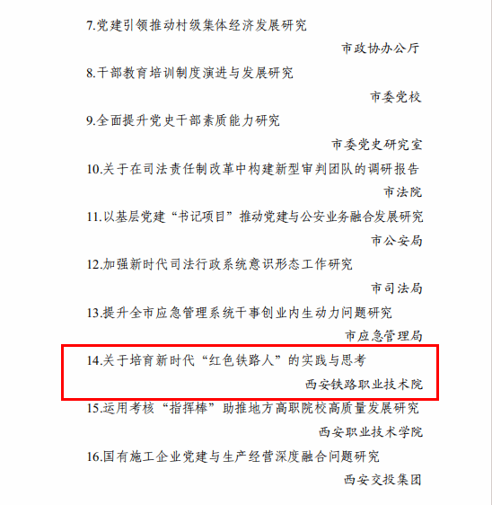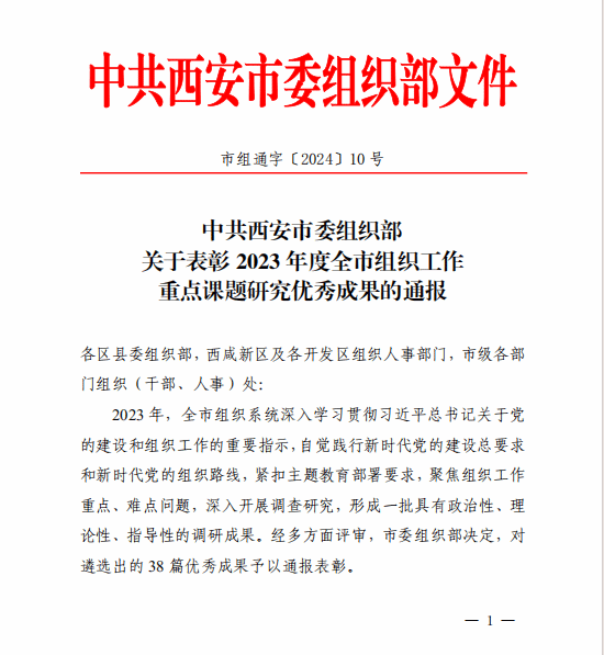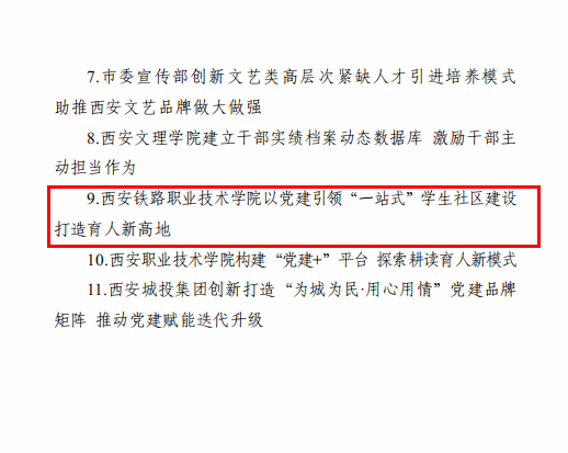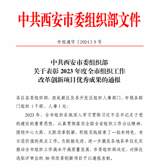 近日,西安市委组织部发布了《关于表彰2023年度全市组织工作改革创新项目优秀成果的通报》(市组通字〔2024〕9 号)和《关于表彰 2023 年度全市组织工作重点课题研究优秀成果的通报》(市组通字〔2024〕10 号),鸭脖申报的《以党建引领“一站式”学生社区建设 打造育人新高地》项目获得“2023年度全市组织工作创新项目”三等奖,这是鸭脖连续四年获得“组织工作改革创新奖”。同时,立足学院组织育人特色撰写申报的《关于培育新时代“红色铁路人”的实践与思考》获得“2023年度全市组织工作重点课题研究成果”三等奖。