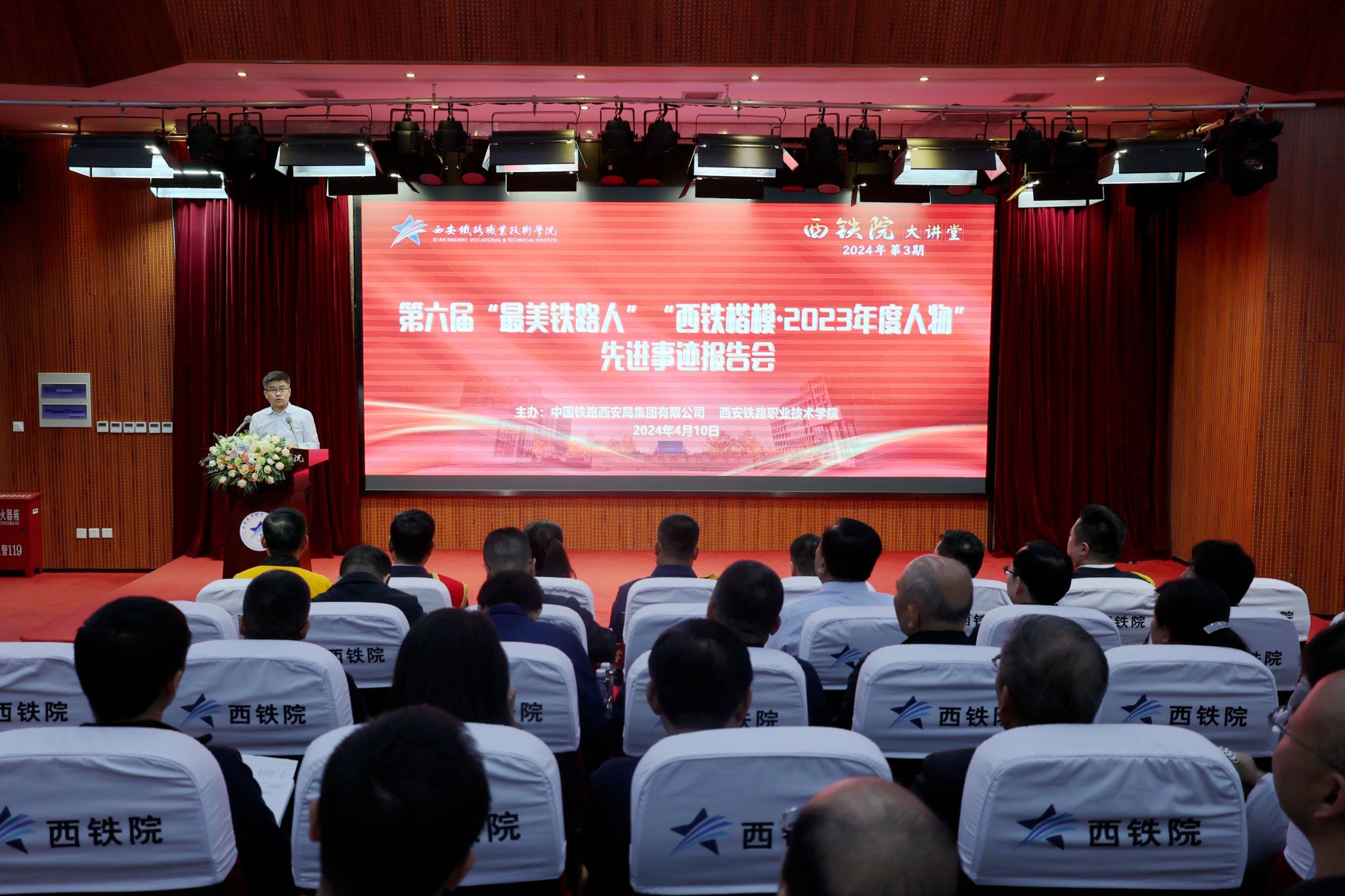 4月10日,鸭脖举办2024年第三期“yabo鸭脖官网大讲堂”,邀请中国铁路西安局集团有限公司的全国第六届“最美铁路人”及“西铁楷模·2023年度人物”代表来校作宣讲报告。党委书记施利民出席并讲话,中国铁路西安局集团有限公司党委宣传部副部长梁波、宣传科科长王浪出席,学院全体处级干部、党校优秀学员代表现场参会,1.7万余名师生通过直播线上收看。报告会由院长赵春平主持。