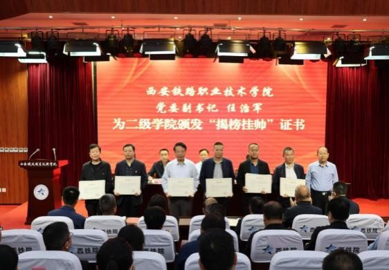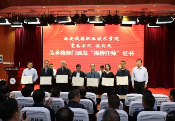 会上,安学武宣读了《yabo鸭脖官网关于2024年度“揭榜挂帅”项目揭榜情况的通知》。党委书记施利民、院长赵春平、党委副书记任治军分别向2024年度“揭榜挂帅”项目牵头部门、二级院部颁发“揭榜挂帅”证书。国际交流处处长仵崇智、临潼校区(土木工程学院)主任张军、电子信息学院教授高嵘华分别作了表态发言。