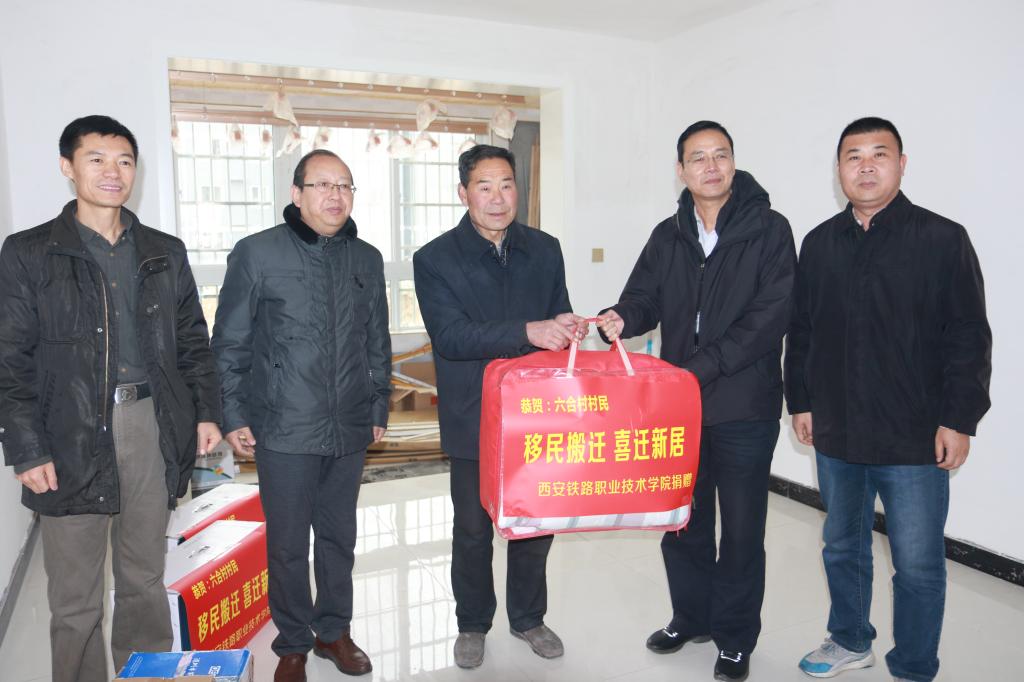 赵六杰一行首先到辛口移民搬迁社区,看望了景兴义,景科,彭小林,周双秀,王松林等五户准备就绪、即将搬迁的村民,对他们搬入新居表示祝贺,并代表学院赠送了家具和电磁炉,棉被等生活日用品。