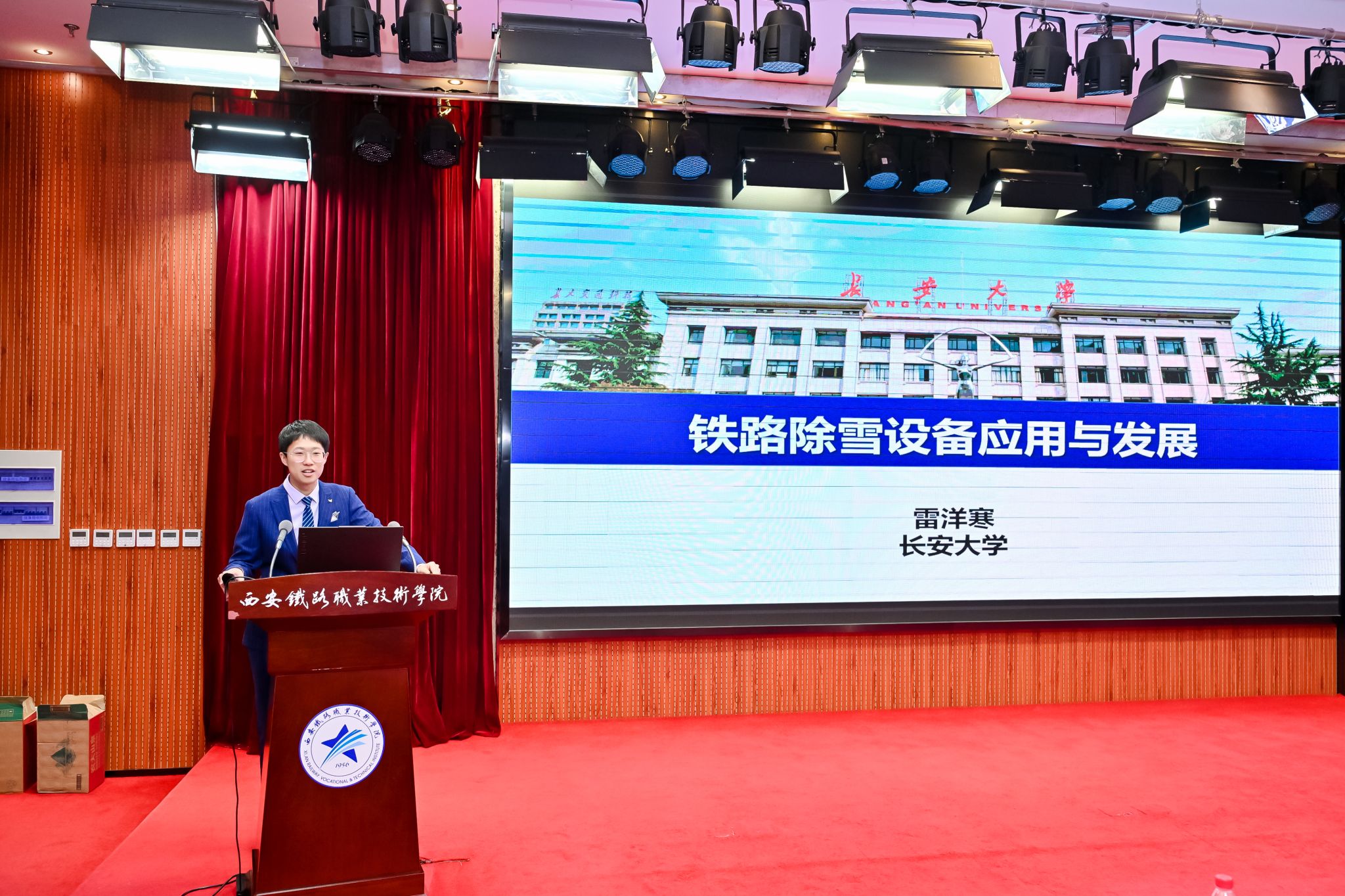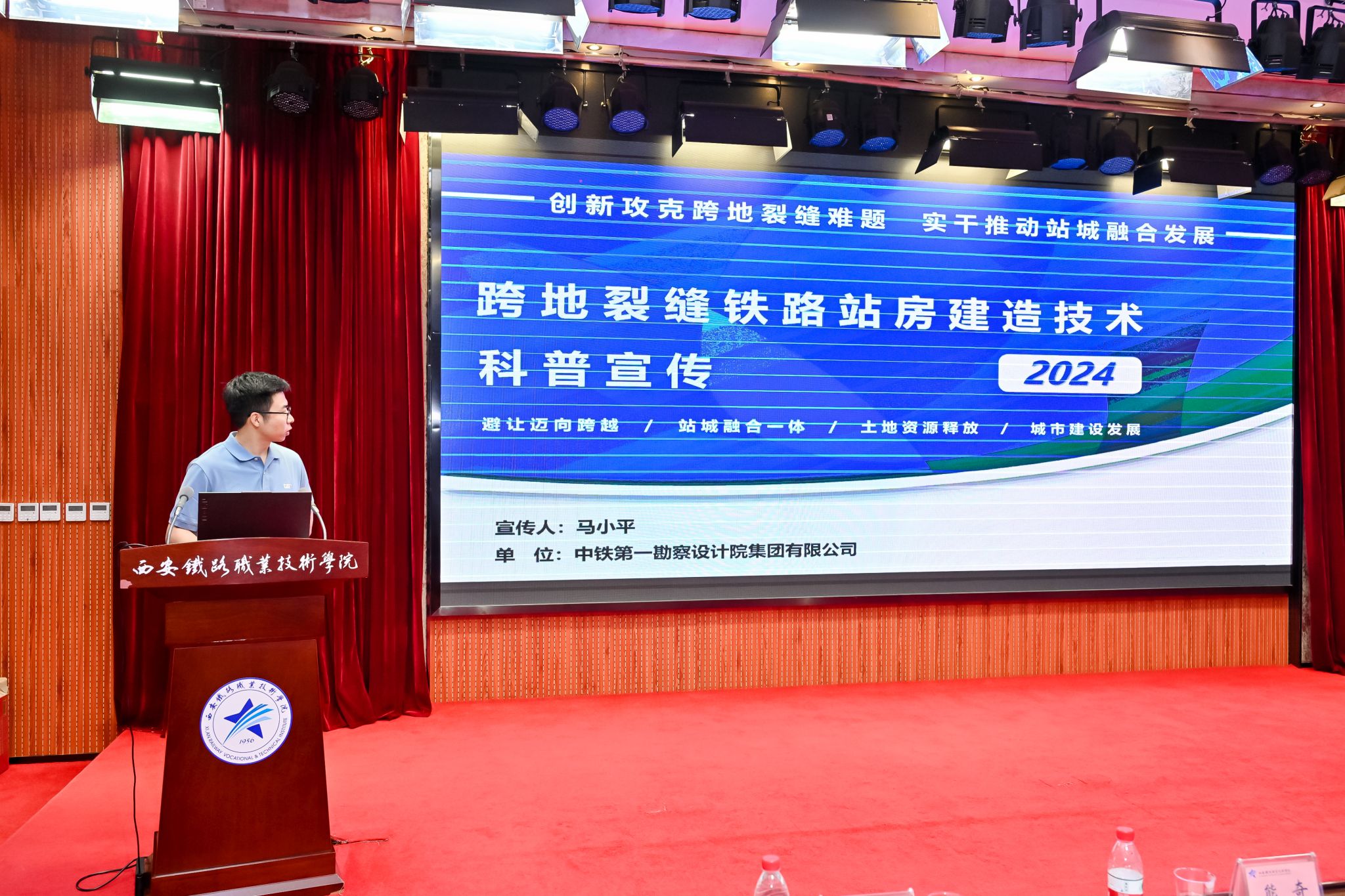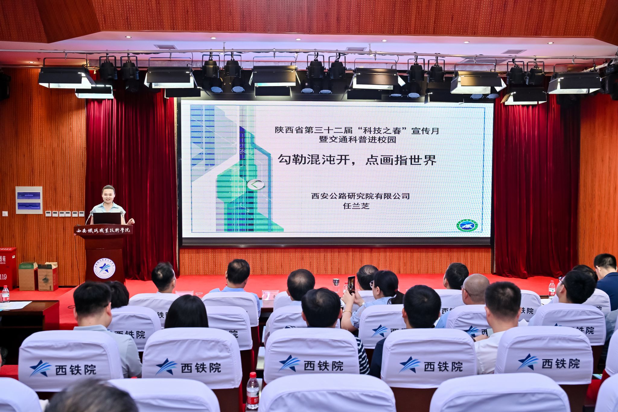 随后,省铁路协会秘书长李宗华主持科普宣讲活动。鸭脖学生毕锦楠率先讲解《零高度飞行器—磁浮列车的工作原理》,为科普宣讲拉开帷幕。陕西交通职业技术学院、中铁第一勘察设计院集团有限公司、长安大学、陕西高速星展科技有限公司、西安公路研究院有限公司,依次分别宣讲《中国铁路—从“追赶”到“超越”》《跨地裂缝铁路站房建造技术》《铁路除雪设备应用与发展》《低空经济+数字交通场景创新应用探索》《勾勒混沌开,点画指世界—浅谈标志标线》等专题。通过交通运输科学技术知识的分享,拓展了同学们视野,为学科学、爱科学、用科学提供了生动案例。