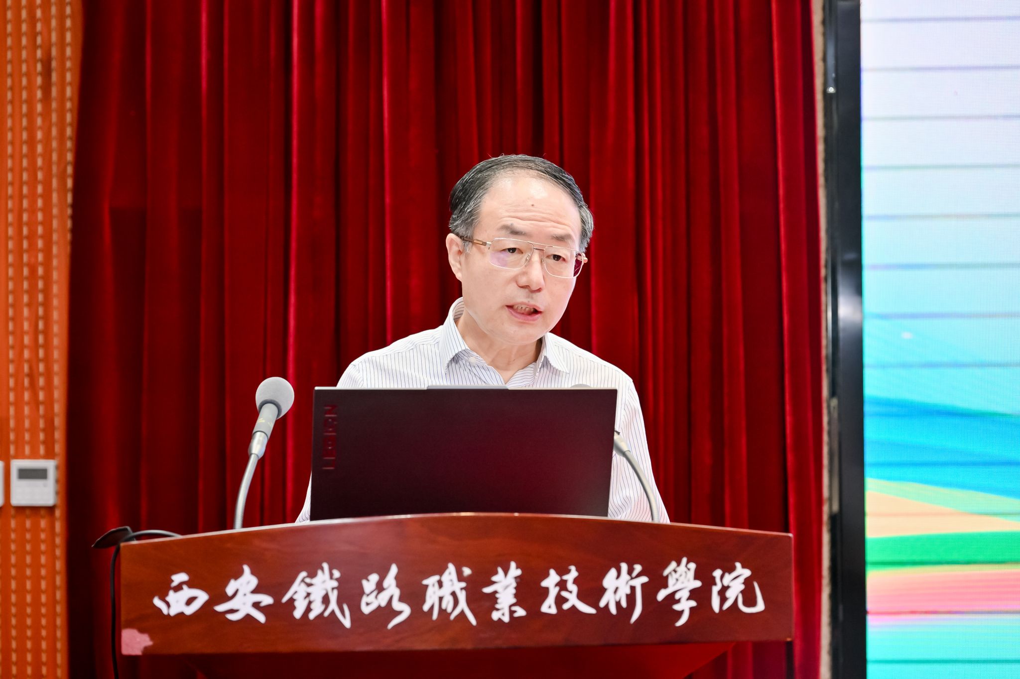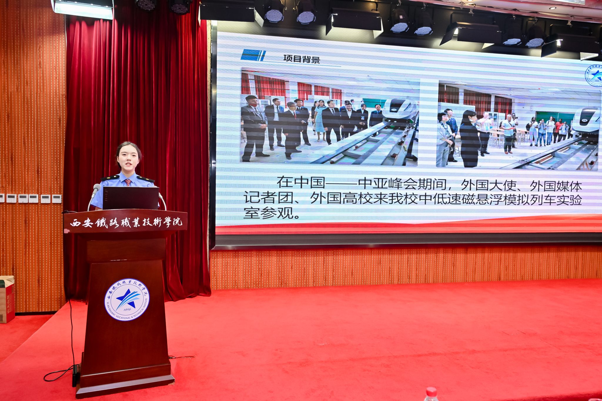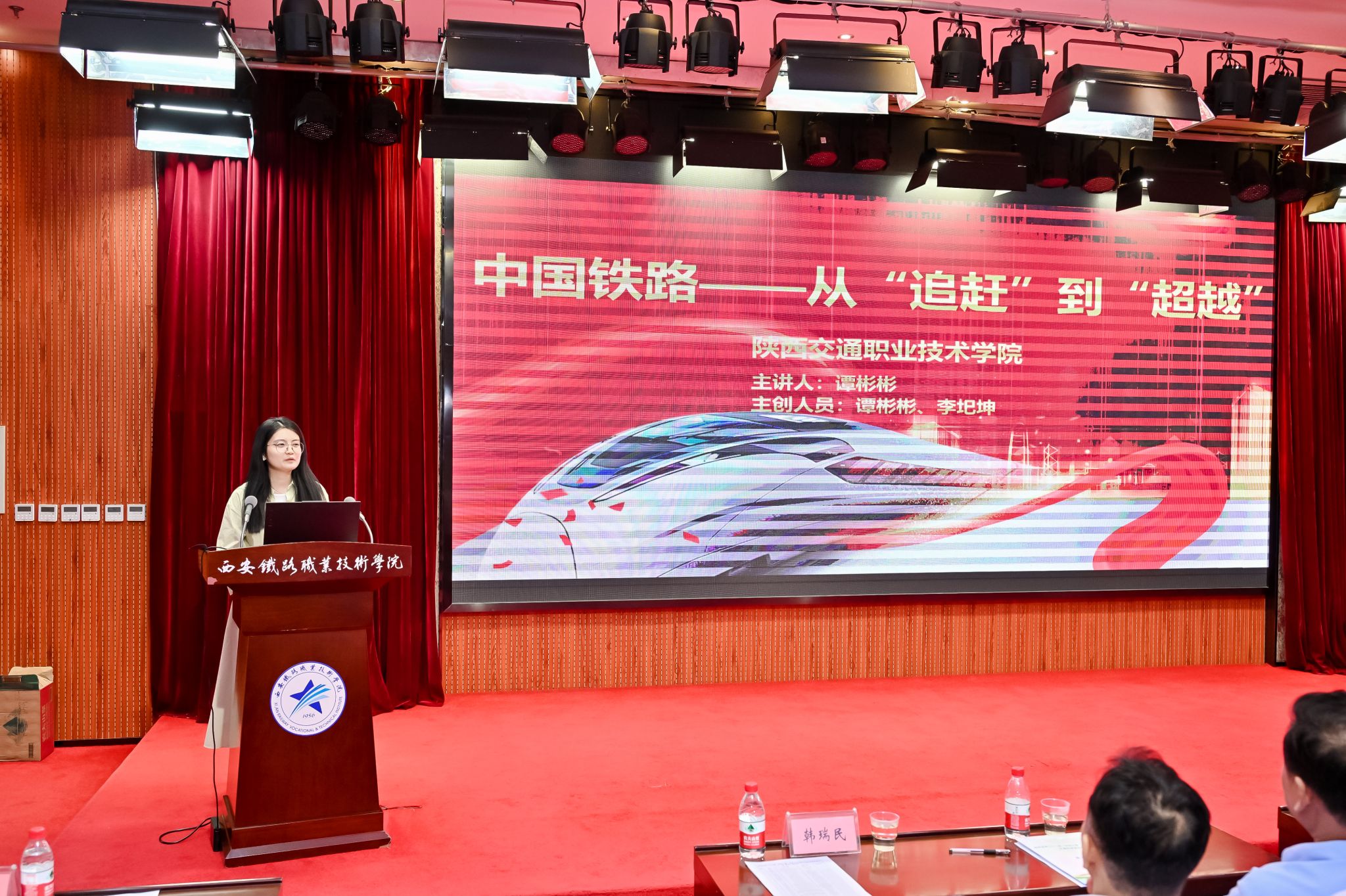随后,省铁路协会秘书长李宗华主持科普宣讲活动。鸭脖学生毕锦楠率先讲解《零高度飞行器—磁浮列车的工作原理》,为科普宣讲拉开帷幕。陕西交通职业技术学院、中铁第一勘察设计院集团有限公司、长安大学、陕西高速星展科技有限公司、西安公路研究院有限公司,依次分别宣讲《中国铁路—从“追赶”到“超越”》《跨地裂缝铁路站房建造技术》《铁路除雪设备应用与发展》《低空经济+数字交通场景创新应用探索》《勾勒混沌开,点画指世界—浅谈标志标线》等专题。通过交通运输科学技术知识的分享,拓展了同学们视野,为学科学、爱科学、用科学提供了生动案例。