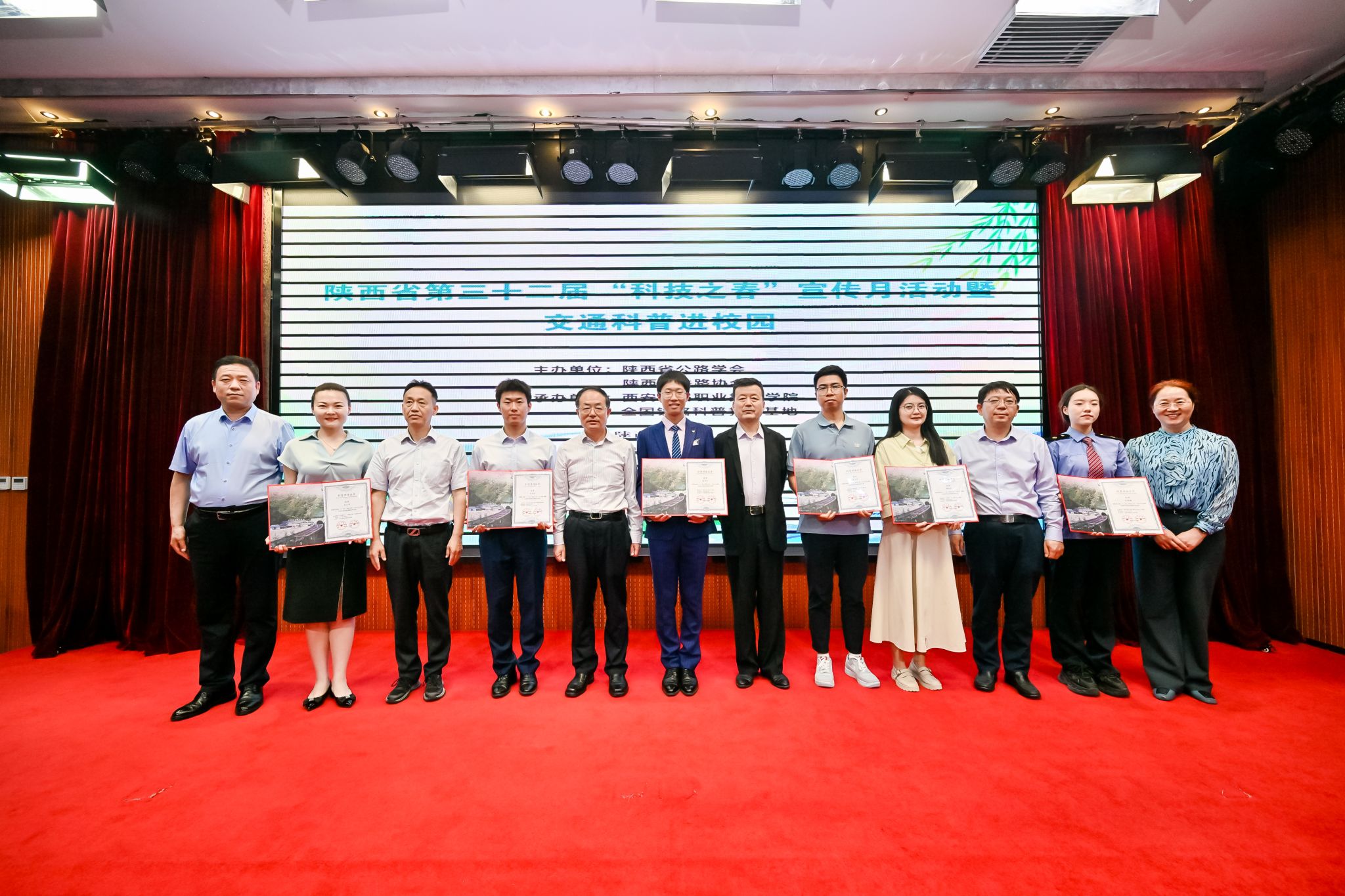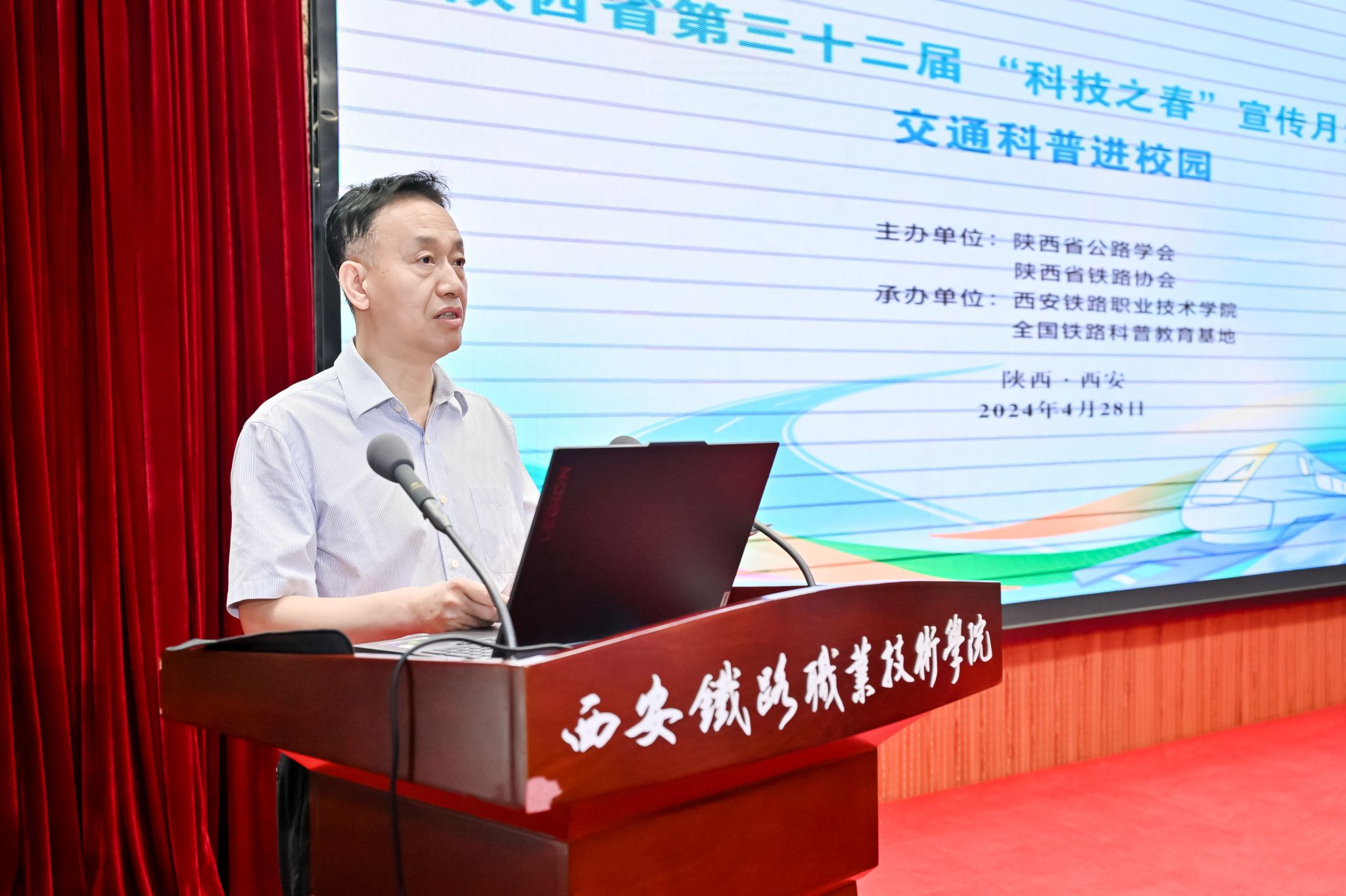 4月28日,由陕西省公路学会联合陕西省铁路协会主办、鸭脖继续教育学院牵头承办的陕西省第三十二届“科技之春”宣传月活动暨交通科普进校园活动在港务校区圆满举行。省交通运输行业科技工作者和鸭脖师生代表150余人参加了活动。