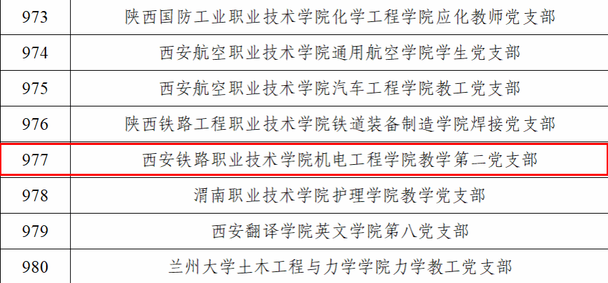 近日,教育部思想政治工作司公布了第四批新时代高校党建示范创建和质量创优工作遴选结果。经省委教育工委推荐、资格审查、专家评审、教育部党的建设和全面从严治党工作领导小组成员单位集中审议,全国共遴选产生了1001个样板支部,其中,陕西省向教育部推荐了205个党支部参加全国评选,最终入围38个全国样板党支部,陕西省高职院校入围9个,鸭脖机电工程学院党总支教学第二党支部入选第四批“全国党建工作样板支部”培育创建单位。