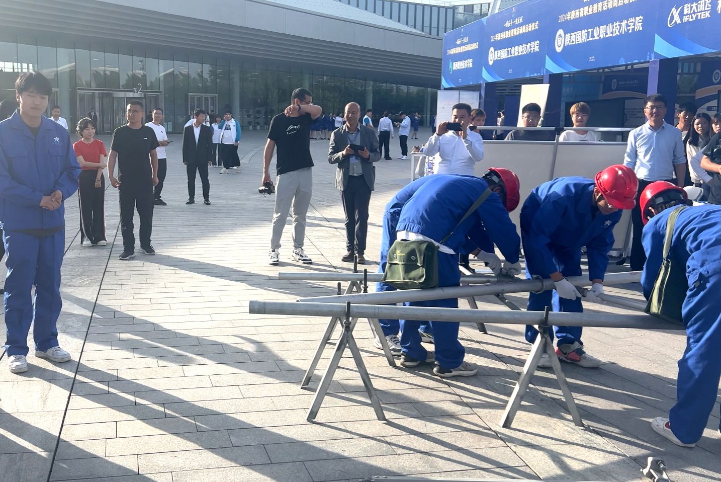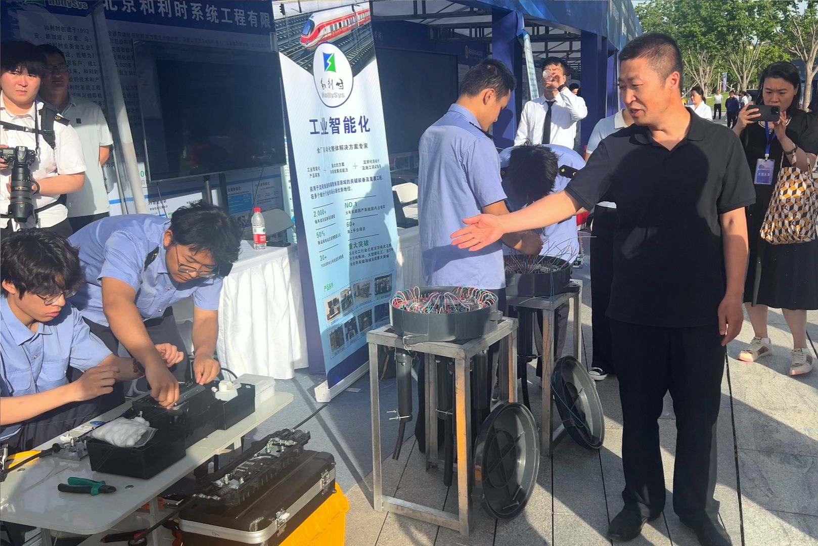 会场外,全省各大职业院校的优秀技能项目展演中,来自学院的光缆接续、箱盒配线工艺展示、铁路接触网受电弓腕臂组装和礼仪风范现场展示赢得了广大参会人员的赞许。