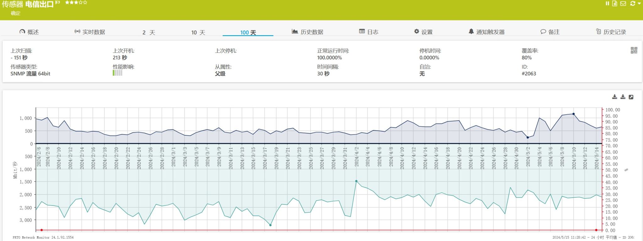 截止2024年5月,新旧校园网已平稳有序地完成了割接。通过本次升级建设,新校园网核心层运行稳定,启用两周以来,未发生任何重大故障,流量调度正常运行。目前,校园总出口带宽已达40Gbps,港务校区核心骨干网带宽可达100Gbps,80Gbps到楼宇,10Gbps到桌面,港务校区到其他三校区带宽可达20Gbps。无线网络登陆实现了无感切换,5G双域专网建立了校外访问校内资源的高速通道。这些改进彻底解决了教室、实训室和办公室有线网络在突发流量涌现时造成拥堵和丢包问题,同时极大改善了无线网络的使用体检,增大了校内覆盖范围,并消除了校内资源使用场所受限的情况,为数字化教学改革、管理服务智能化改造提供了基础支撑。