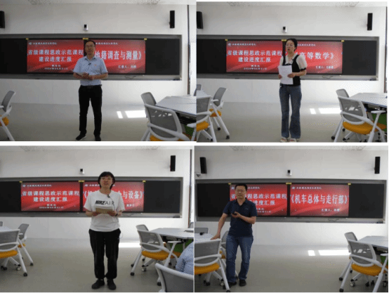 第二部分由省级课程思政示范课程进行建设进度汇报。课程团队负责人分别对课程建设进度具体情况、存在问题以及解决措施等方面进行汇报。