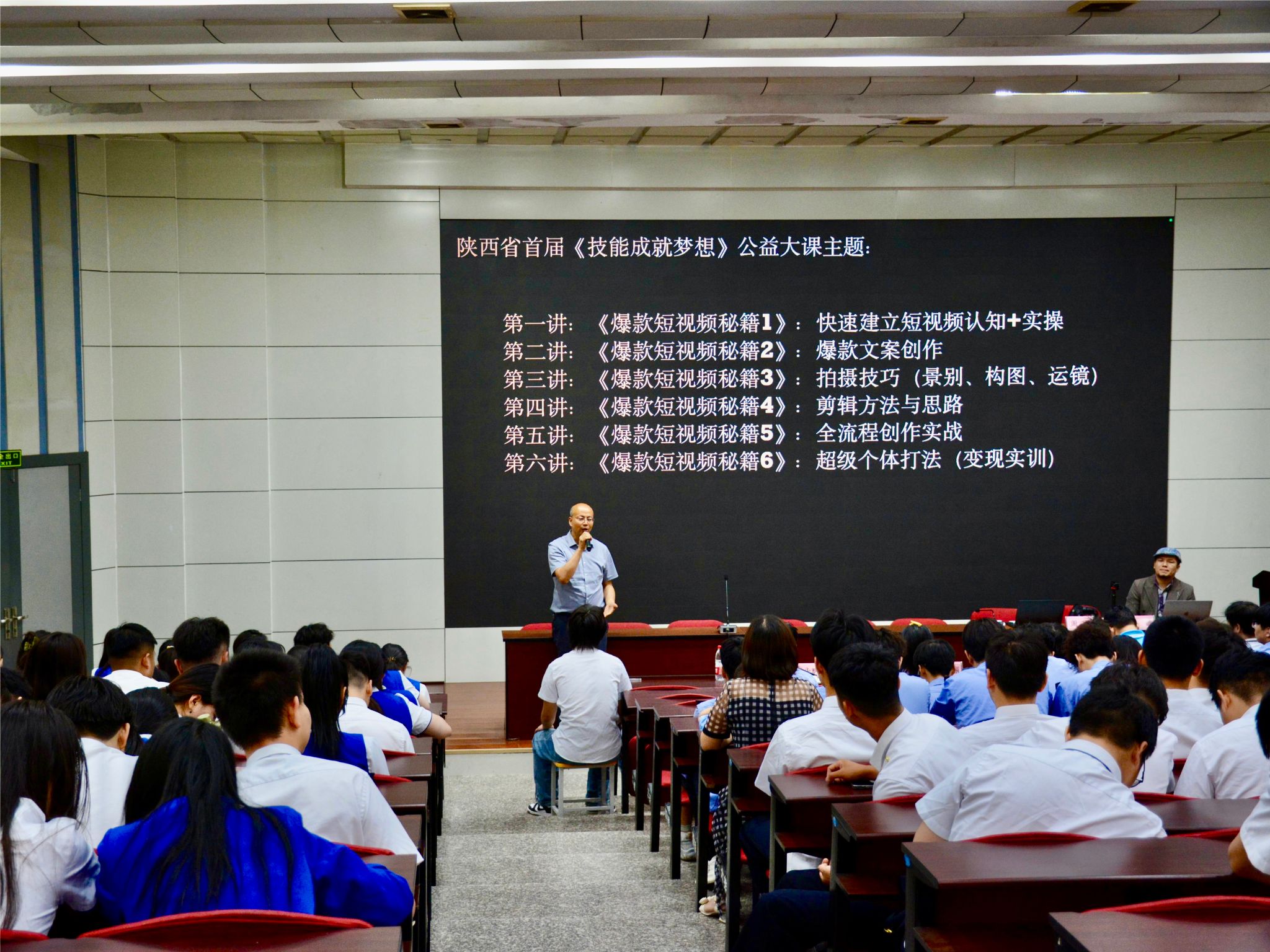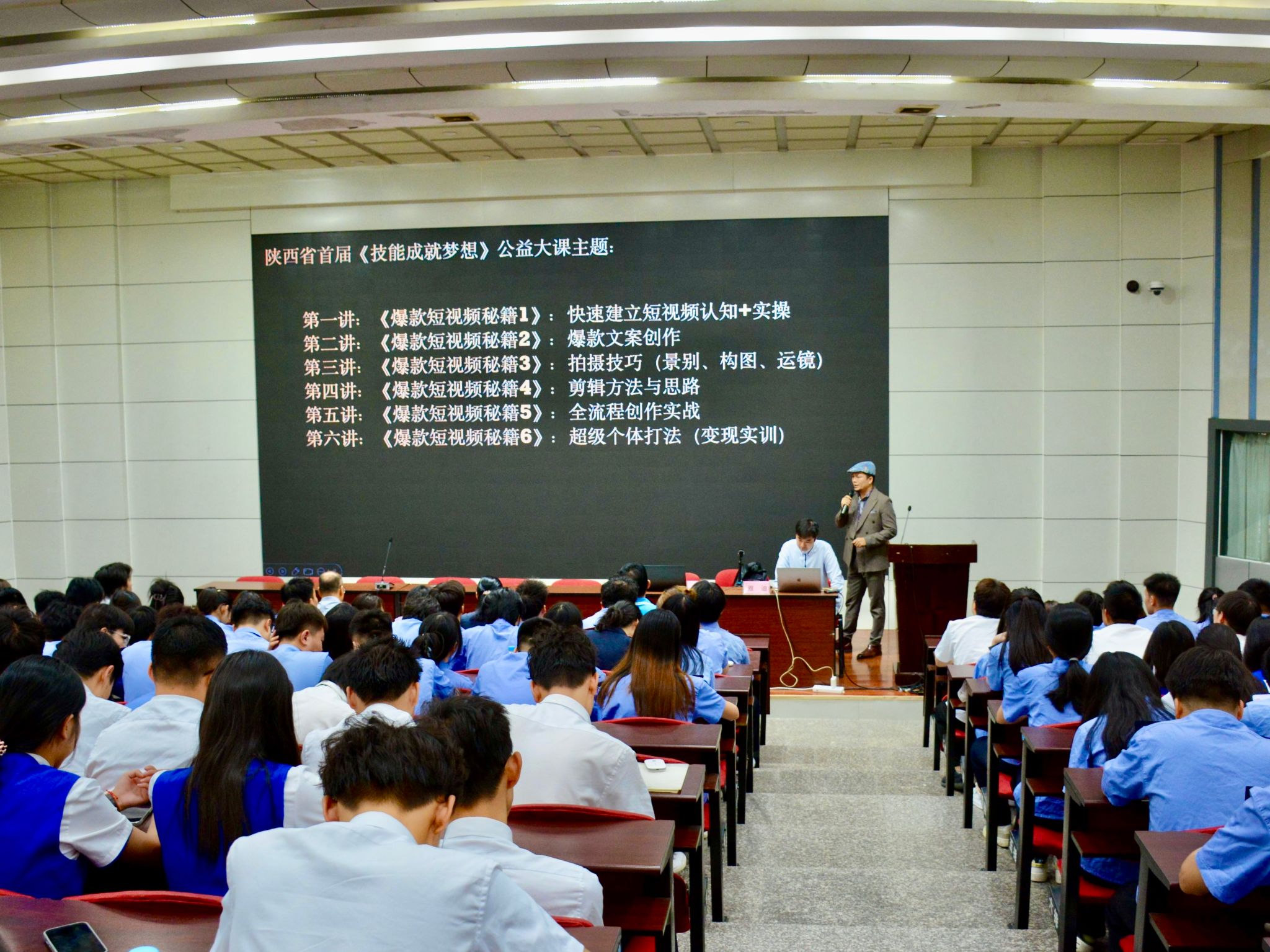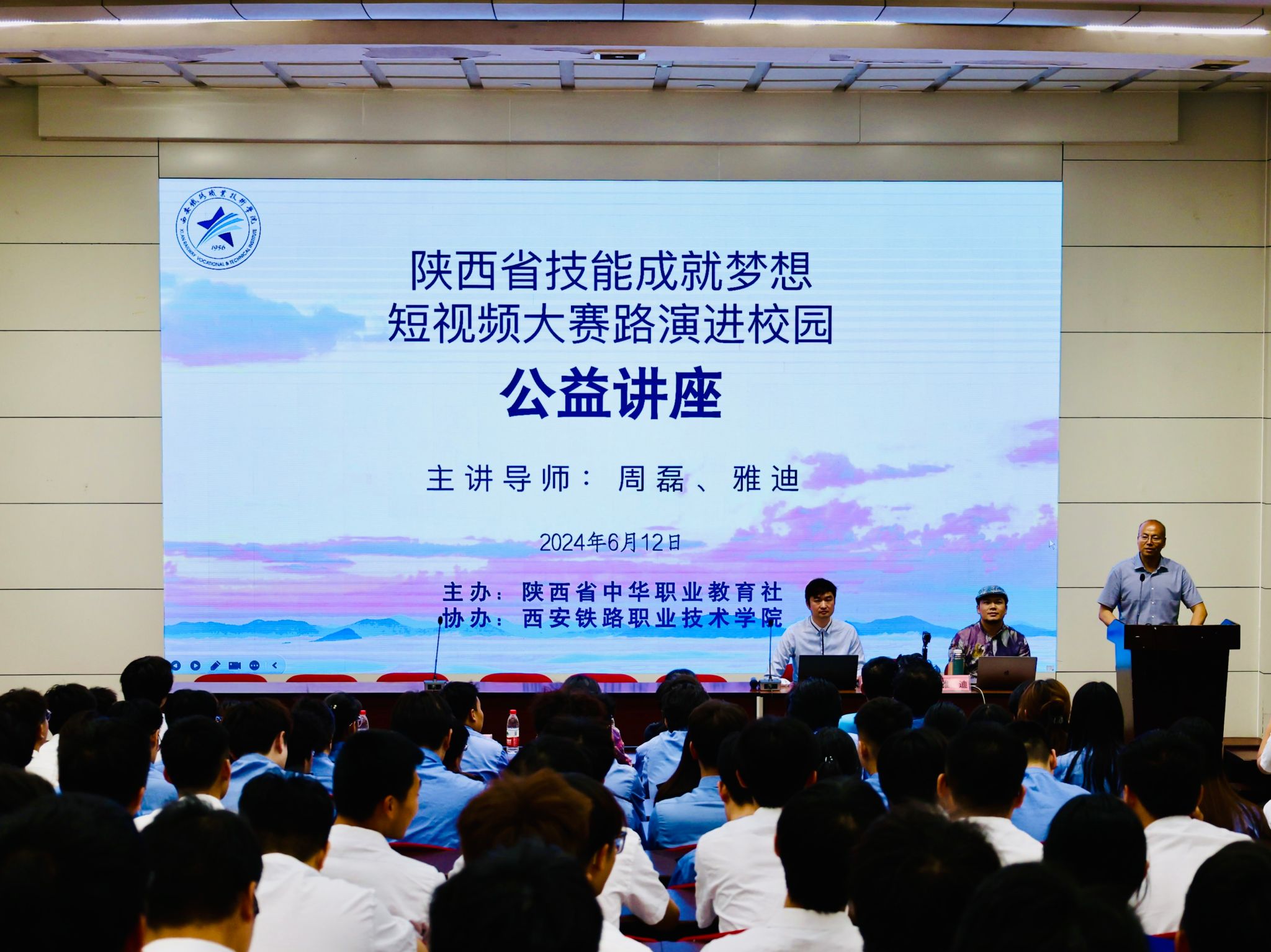 6月12日,由陕西省中华职业教育社主办、yabo鸭脖官网协办的“陕西省技能成就梦想短视频大赛路演进校园”公益讲座在自强校区阶梯教室举行。在本次讲座中,陕西省中华职教社特别邀请了业界专家周磊、雅迪两位导师主讲,陕西省政协各界导报主编主任宋海云、卢子涵,交通运输学院党总支书记王秀丽、学院党委学工部副部长孟永辉,以及自强校区电子信息学院、交通运输学院师生代表200余人现场参加。