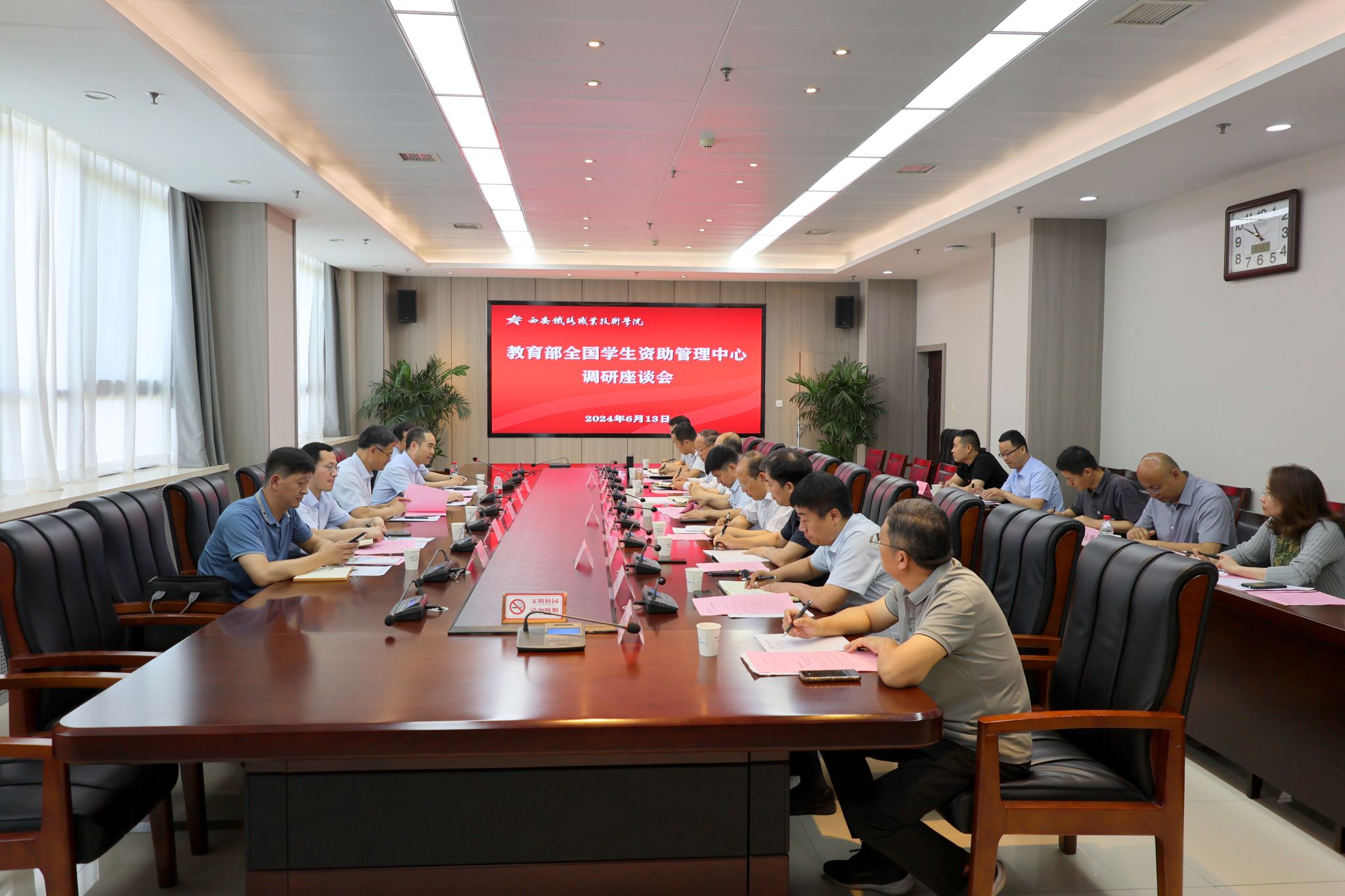 6月13日上午,教育部全国学生资助管理中心副主任涂义才、信息化处处长焦旭、省委教育工委、省教育厅总会计师刘宏恩、省教育厅学生资助事务中心主任姬建鹏等一行莅临鸭脖调研指导学生资助及信息化建设工作。西安航空职业技术学院和陕西交通职业技术学院相关负责人也应邀参加调研座谈会。