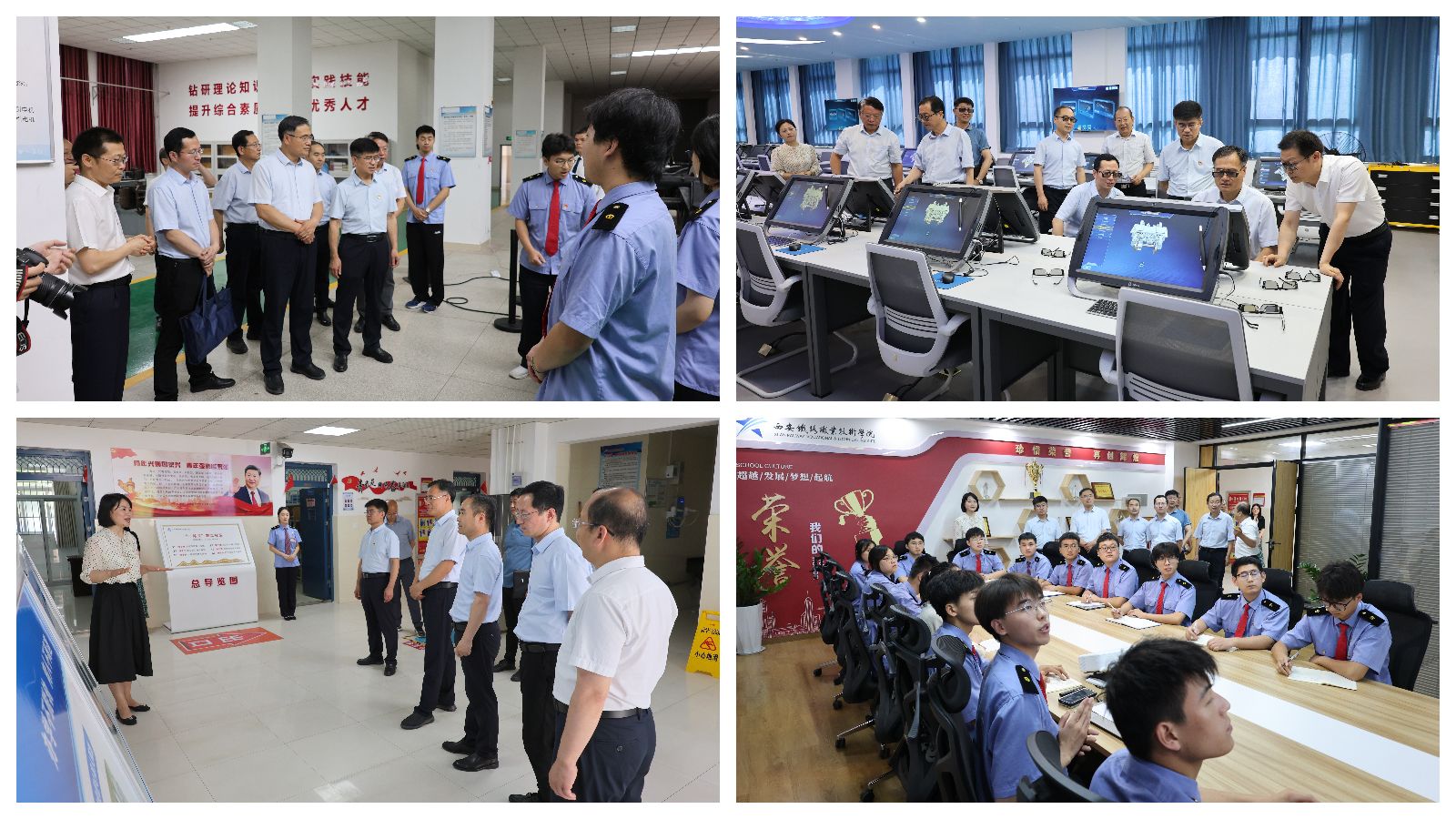 在学院院长赵春平、党委副书记任治军陪同下,涂义才一行参观了学院轨道交通综合演练场、国家级虚拟仿真实训中心、“复兴号”高铁模拟驾驶实训室和“精工书院”一站式学生社区,并与正在实训的师生亲切交流。教育部和省教育厅领导们对鸭脖鲜明的专业特色和紧贴行业前沿、精良完善的实训设施赞不绝口,对鸭脖“半军事化”特色学生管理模式、“一站式”学生社区建设理念和育人成效给予了高度评价。