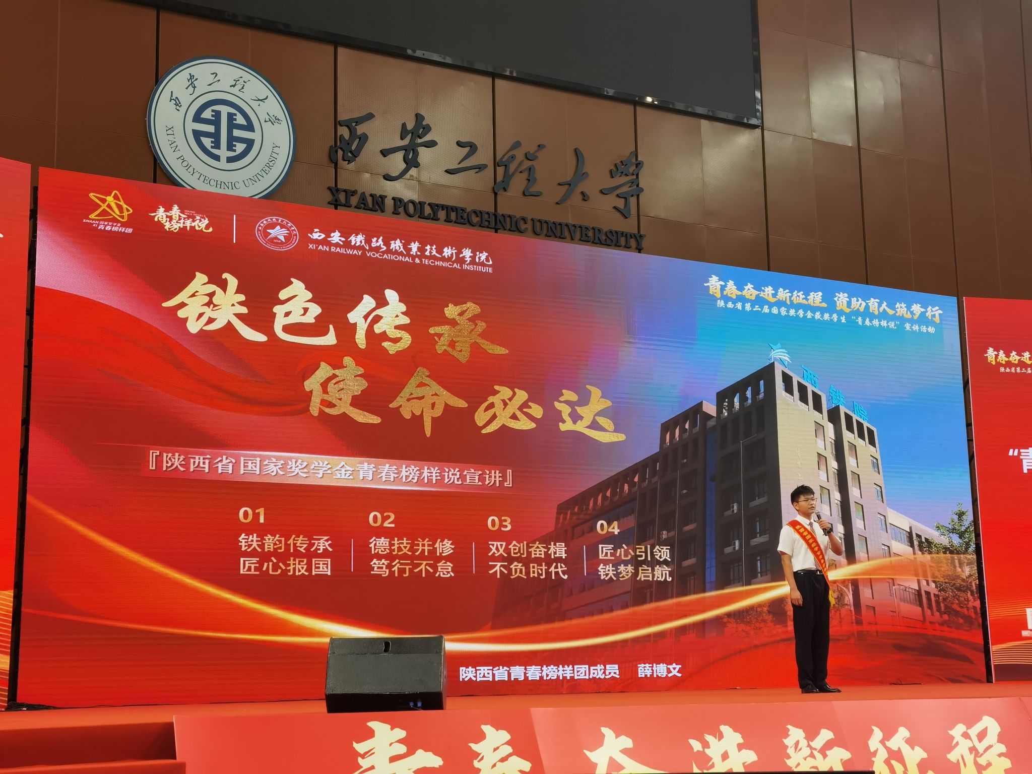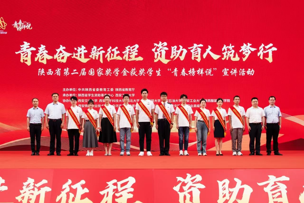 6月13日,陕西省第二届国家奖学金获奖学生“青春榜样说”宣讲活动在西安工程大学临潼校区举行。教育部全国学生资助管理中心副主任涂义才、省教育厅副厅长何玉麒、省教育厅总会计师刘宏恩、省教育厅学生资助事务中心主任姬建鹏、西安工程大学校长王海燕等领导参加了宣讲会,并分别为“青春榜样说”宣讲团成员颁发聘书、致辞讲话。全省各高校师生通过线下线上观看了宣讲会。