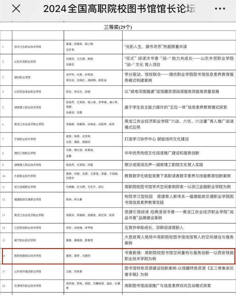 此次获奖,不仅是对获奖馆员辛勤付出的肯定,也是激励图书馆继续前行的动力源泉。图书馆将以此为契机,进一步深化智慧图书馆建设,加强与其他高职院校图书馆的交流合作,秉承“服务教学、服务科研、服务师生”的宗旨,为学院高质量、高水平发展贡献力量。