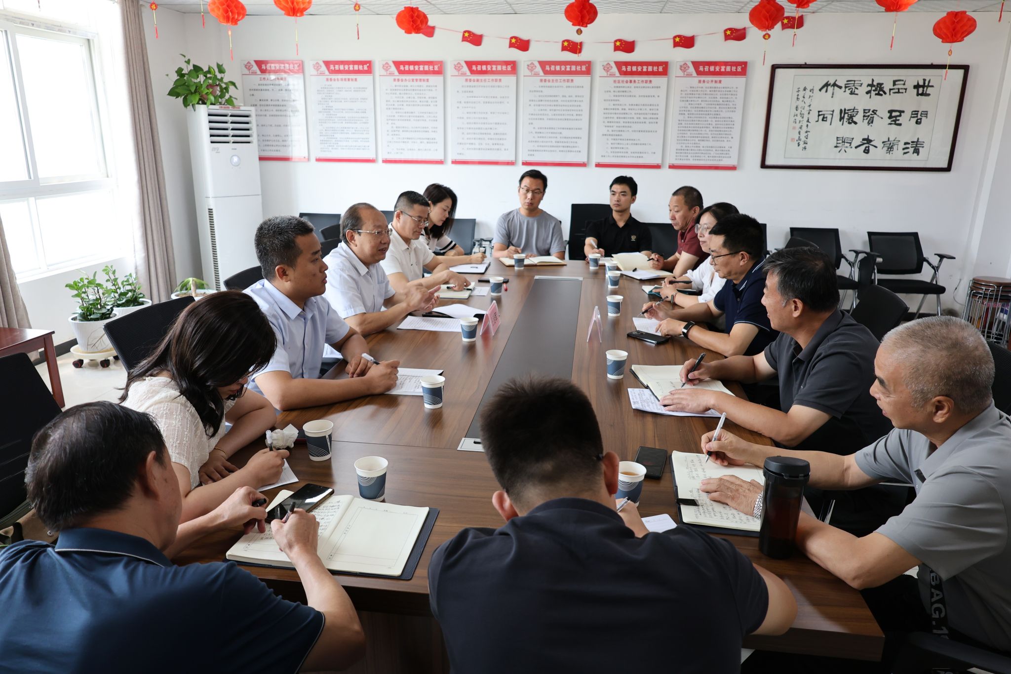 任治军代表学院对驻村工作人员的工作成绩和勤苦付出表示高度肯定和亲切慰问,对安福园社区近年来的发展变化表示赞扬,向镇党委、镇政府与社区“两委”对学院工作队的支持表示感谢。他表示,学院与社区的工作目标一致,希望驻村工作队与村支两委精诚合作,团结一心,开动思维,在社区振兴的新征程上做出更好的成绩。他希望新选派驻村工作队第一书记要传好驻村“接力棒”,一是提高政治站位,学习贯彻落实好二十届三中全会关于农村改革与乡村振兴的新要求;二是用心用情用力,密切联系群众,全力做好社区工作;三是不畏艰难,加快角色转变,尽快摸清社区情况,确保在新的岗位上开好题、答好卷。
