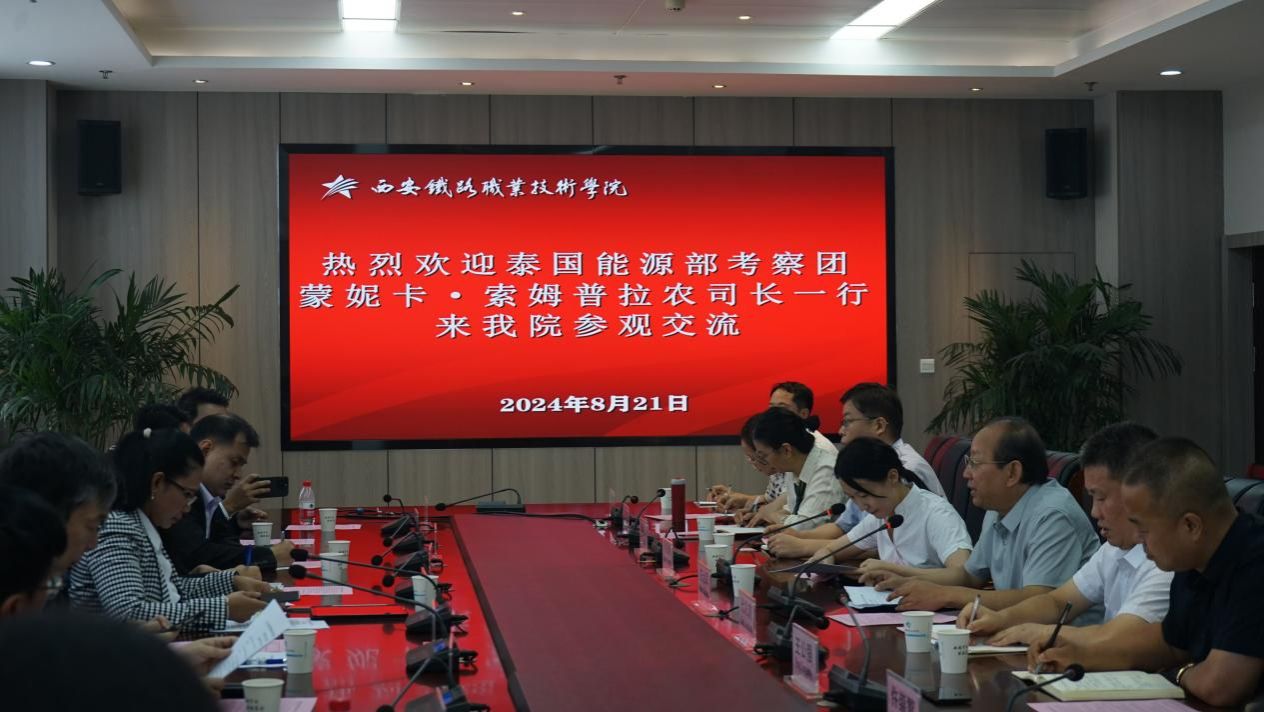 8月21日上午,泰国能源部考察团蒙妮卡·索姆普拉农司长、泰国国王科技大学工程学院电气工程系主任素帕齐·乔提戈以及阿纳瓦·桑斯旺教授、陕西省太阳能行业协会会长安福成等一行12人来鸭脖参观交流,学院党委副书记任治军接待了考察团一行,国际交流与合作处处长仵崇智、副处长靳丽君,党政办副主任谭松陪同参观和座谈。