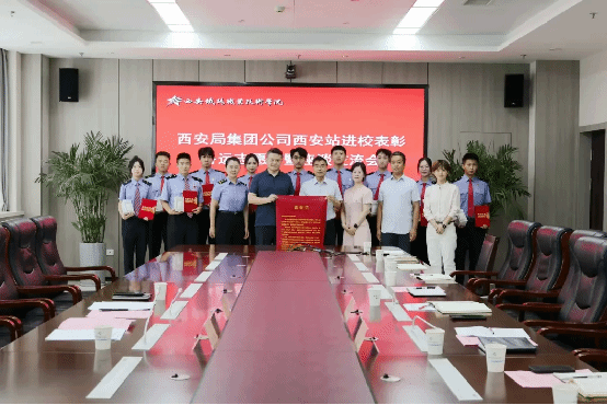 座谈会前,学院院长赵春平亲切会见了西安站领导,对其到来表示热烈欢迎,并进行了深入沟通交流。座谈会上,滕勇对长期关心支持鸭脖工作的站上领导表示衷心感谢,并希望今后在志愿服务、协同育人、党的建设、毕业生就业等方面进一步深化交流合作的深度和广度,争取更多新的校企合作成果。降莉媛宣读了优秀志愿者表彰名单,罗鑫、滕勇共同为学院2024年暑运优秀志愿者代表颁发荣誉证书与纪念品,西安站为学院还送上感谢信,罗鑫表示,自己作为学院的毕业生,对学院有着特殊的感情和情怀,感谢学院连续多年组织志愿者对助力“两站”客运做出的积极奉献与支持,他从鸭脖志愿者的优良精神风貌与鸭脖输送给西安站的毕业生的优秀表现中看到了学院显著的育人成效,也希望能够与学院进一步深化校企合作,协同向深向实共育人才,为铁路行业培养出更多高素质、专业化技术技能人才。