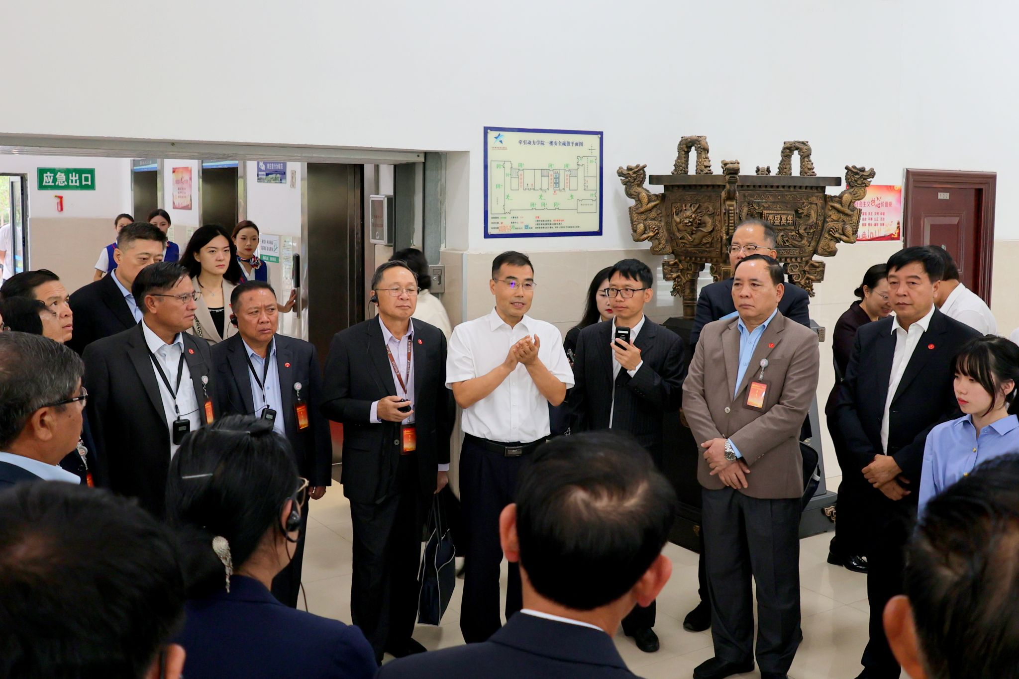 9月20日,由老挝人民民主共和国财政部党委副书记、副部长本博•万纳吉率领的“2024年第二批老挝干部考察团”一行30人来访鸭脖,中央对外联络部国际交流中心副主任姚建国及中国延安干部学院院务委员、一级巡视员贾波等陪同访问。学院党委书记施利民、院长赵春平等主要领导接待了考察团一行,鸭脖13名老挝留学生一同参加了接待活动。