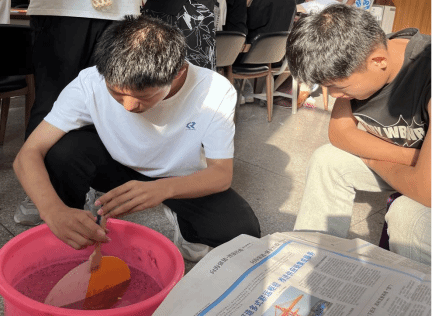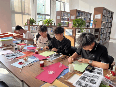 版画制作环节,利用现代吹塑纸材料,巧妙结合传统版画技艺,一笔一划间勾勒出一幅幅具寓意中秋团圆的版画作品,体现了传统与现代的和谐共生,使师生们感受到了传统版画艺术的魅力。