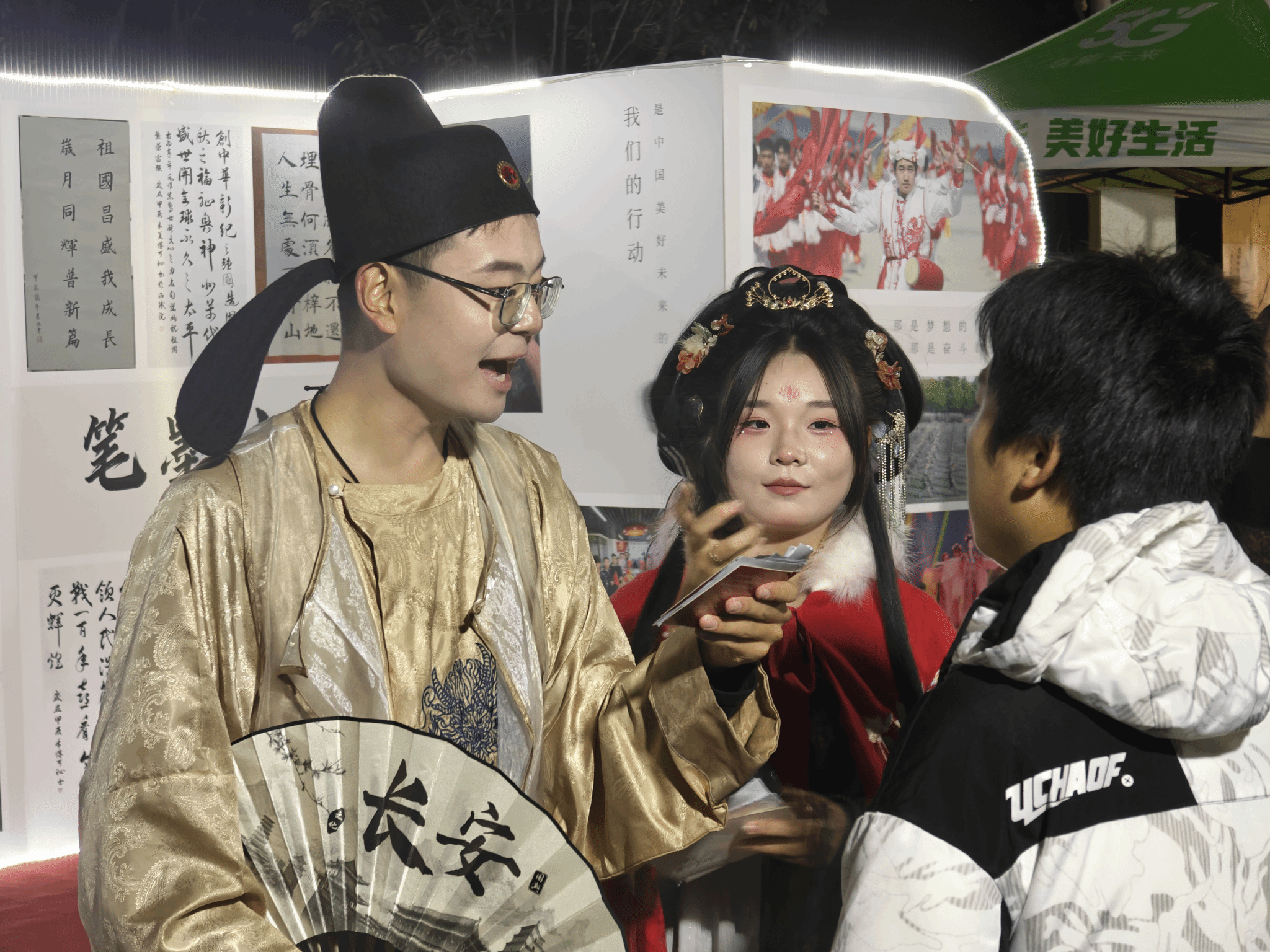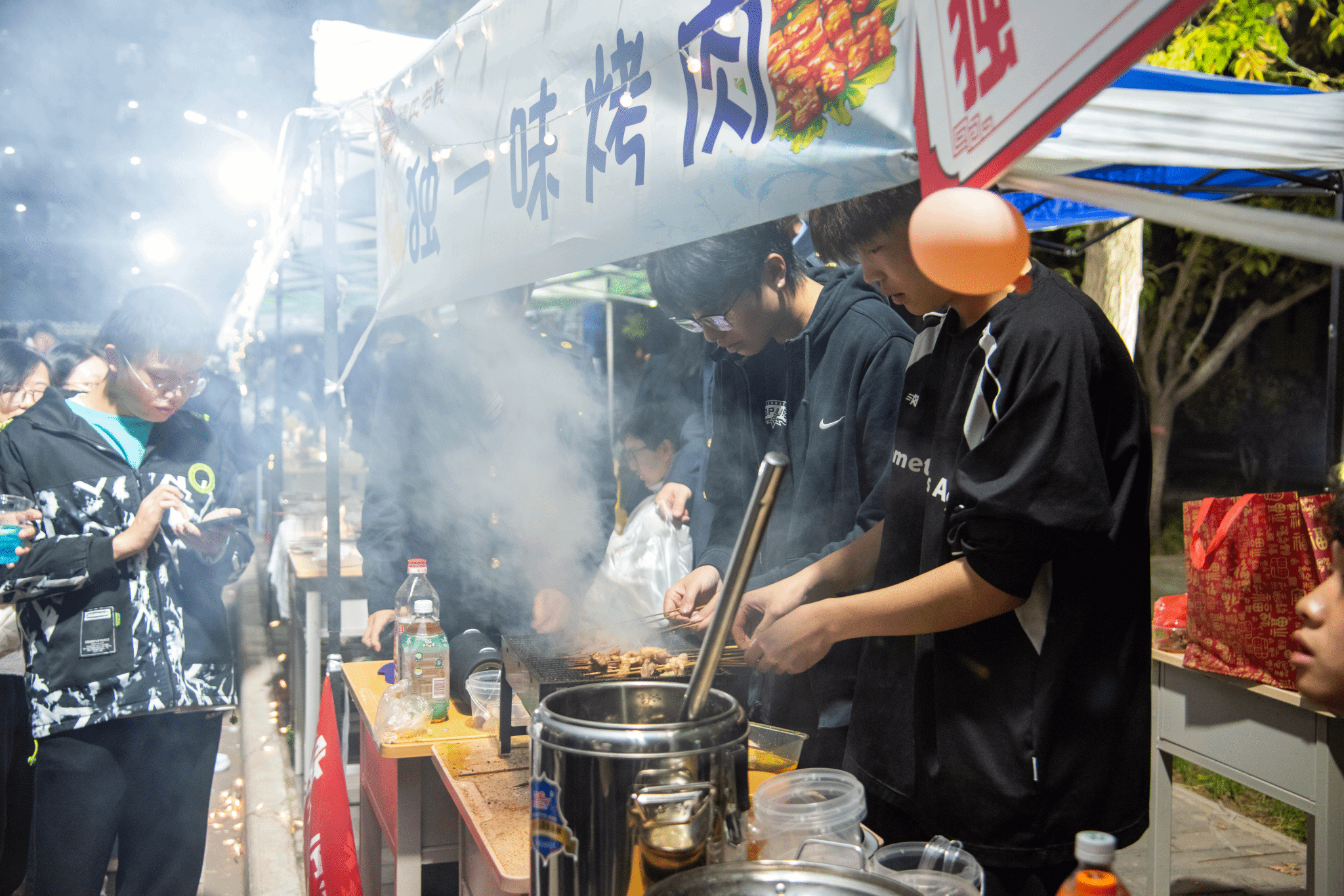 “盛唐密盒”诗词对答成为同学们展现才华的舞台,许多参与者以流畅的对句赢得了观众的阵阵喝彩;各式小吃的摊位,大碗茶、烤红薯、烤肉等,散发出诱人的香气;社团文化艺术节上,百家社团在此展示了西铁学子们的艺术才华,丰富多彩的节目表演让观众大饱眼福;线上线下都颇有人气的西安南门巴士乐队也受邀来到现场驻唱,富有感染力的歌声和动人的旋律让同学们沉浸其中,引发了一阵又一阵的欢呼与共鸣。在这样充满活力与激情的时刻,师生们尽情享受,乐在其中,共同体验到这次文化集市与艺术节的独特魅力。