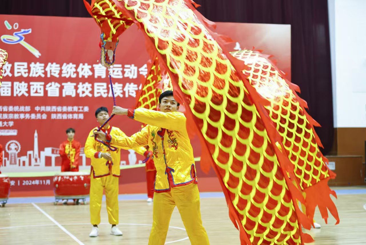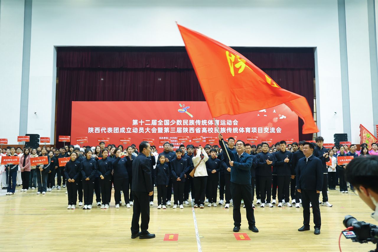 11月9日,“迎全国民族运动会 展传统体育风采”第十二届全国少数民族传统体育运动会陕西代表团成立动员大会暨第三届陕西省高校民族传统体育项目交流会在西安交通大学思源学生活动中心隆重举行。本次大会由中共陕西省委统战部、中共陕西省委教育工委、陕西省民族宗教事务委员会、陕西省体育局主办,西安交通大学承办。陕西省委常委、统战部部长、第十二届全国少数民族传统体育运动会陕西代表团团长李明远,省政府副省长徐明非,省委统战部常务副部长周玉峰,省委教育工委副书记王海波,省政府办公厅副主任谢泱,省民宗委副主任王晓斐,省体育局副局长徐鹏等领导出席活动,大会由省委统战部副部长、省民宗委主任董劲威主持。本次交流会共计52所高校、78个代表队的839名队员参与展演,为现场观众展示腰鼓、传统武术等30项民族传统体育项目。