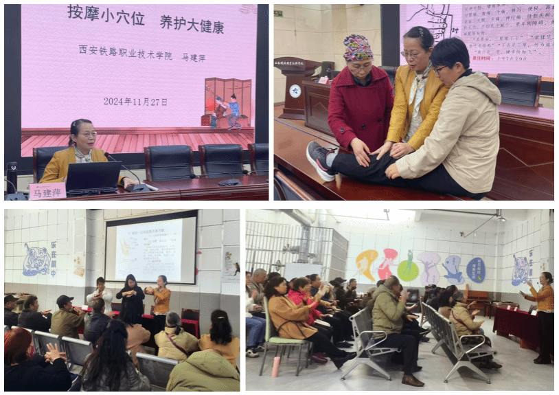 为发挥好学院资源优势和服务社会职能,以国家2024年健康素养促进项目——健康知识进万家活动为契机,鸭脖继续教育学院院长樊润慧与学院联合共建的长安区韦曲街道澜山社区教育基地以及驻地莲湖区红庙坡街道和所辖社区主动联系,沟通活动方案,确定讲座内容,选聘主讲教师,打磨讲座内容,采取“讲授+演示+实操”的宣讲形式,注重交流互动,强化学习效果;召开启动仪式,邀请西安市社区教育指导中心办公室主任崔玲具体指导;通过微信公众号等形式发布讲座信息,及时吸纳听众意见建议,不断优化服务细节,提高讲座参与率,为以后持续高质量开展社区活动总结经验、打好基础。