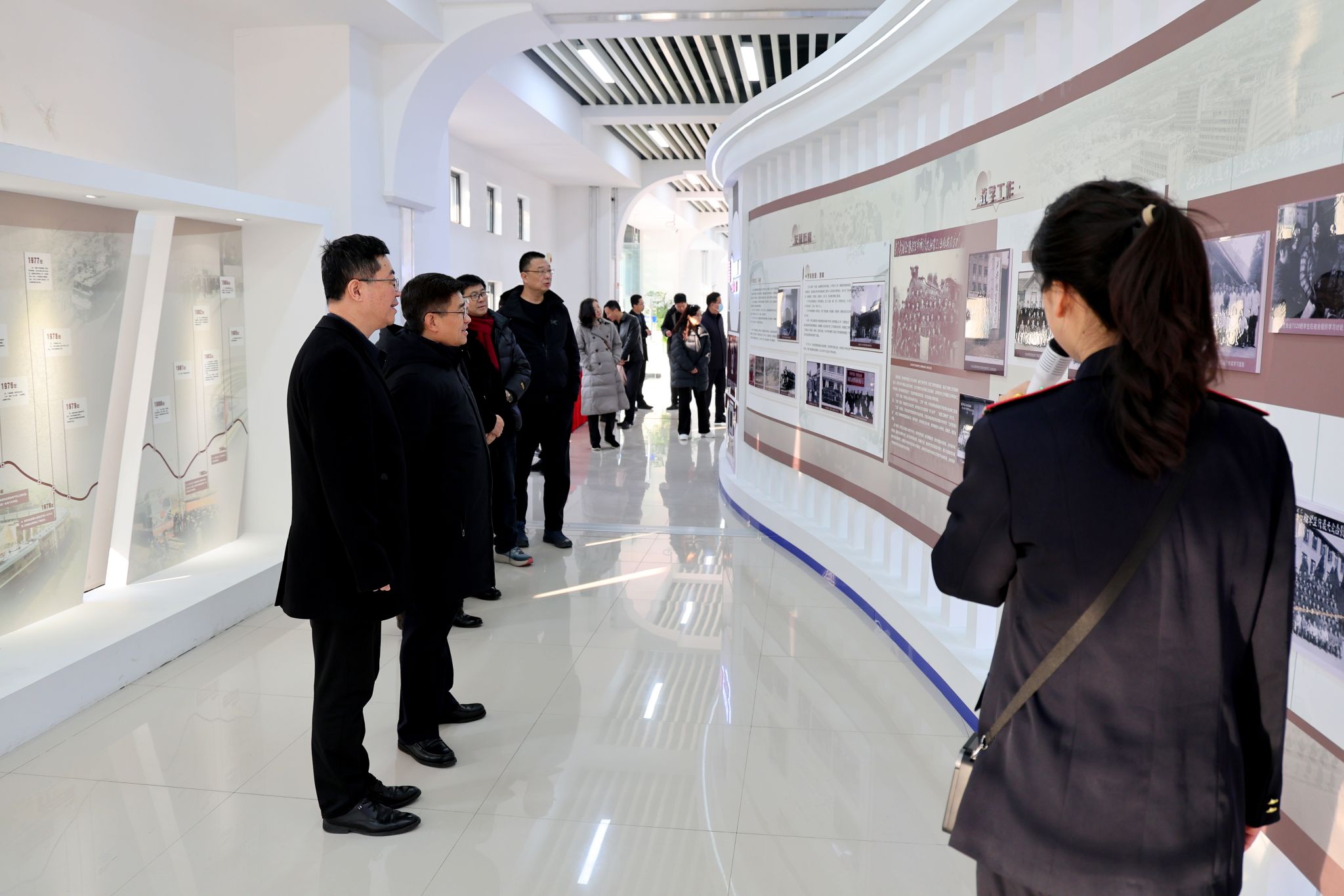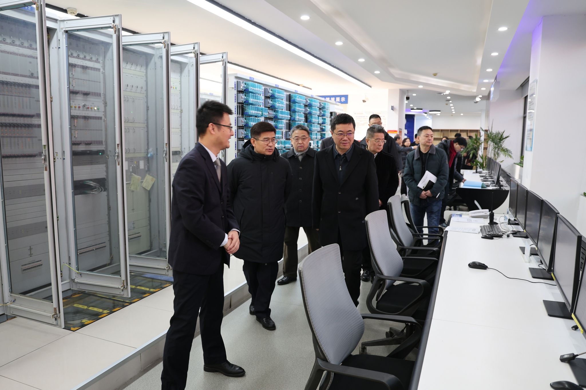 解炜一行先后参观了学院党建文化长廊、国家级虚拟仿真实训基地、地铁模拟驾驶实训中心、复兴号模拟驾驶实训基地、校史馆和轨道交通专业综合实训中心。