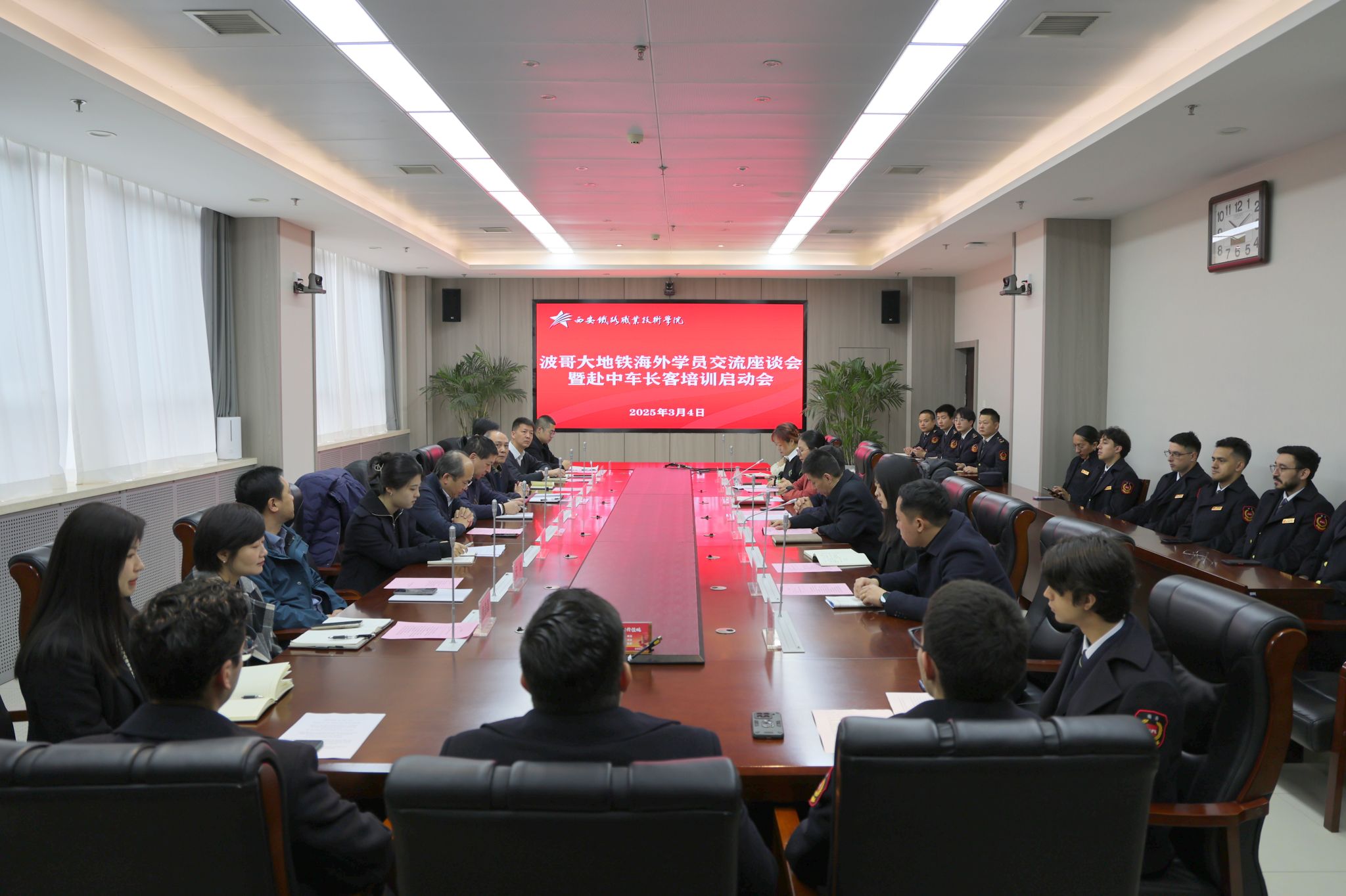 3月4日上午,哥伦比亚波哥大地铁一号线项目公司总经理丁文、高级主管于高荣来学院调研该项目海外员工培训开展情况并与学院领导座谈交流。西安市轨道交通集团运营分公司党委书记王鉴、副总经理禹建伟、培训咨询中心总经理侯晶晶、副总经理张鑫,办公室主任元铭等出席。学院党委书记赵春平,国际合作处处长仵崇智、副处长靳丽君,班主任、辅导员、教师代表和波哥大地铁二期39名海外员工一同参加座谈交流。