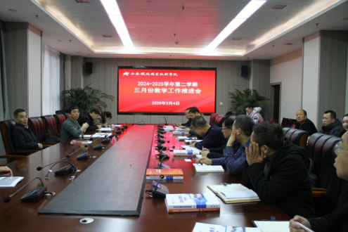 教务处处长张刚毅首先就2025年世界职业院校技能大赛省赛备赛工作、2025年教学成果奖培育工作、专业教学资源库更新建设、2025年教育教学改革研究项目培育工作、现代职业教育体系改革实践类项目年度检查验收申报工作、第三批专创融合“金课”与专创融合“金师”遴选工作、2025年省级在线精品课程重点培育项目遴选工作、2024年“课程思政”和混合式教学优秀案例集发布工作等八个方面对寒假具体工作开展进行汇报;对三月份重点工作从《高等职业学校办学能力评价实施方案(2025-2030)》《学生综合素质提升行动方案》、第二批“十四五”职业教育国家规划教材和陕西省职业教育规划教材遴选、兰州局、乌鲁木齐局“2+1”校企联合培养、学院单招考试等五个方面进行了安排;并对本学期就加强日常教学管理从持续开展混合式教学、探索课堂教学改革、规范调代课流程、改革考试形式、加强毕业设计(论文)指导、做好“2+1”校企联合培养工作、组织教师实践教学能力比赛、修订人才培养方案等八个方面及教务处牵头的15项标志性教学成果建设的推进工作提出了具体要求。教科研处处长任建国、发展规划处副处长丁洪芬、现代教育技术中心主任王树、继续教育学院院长樊润慧及各教学院部负责人分别就各部门工作进行了汇报。