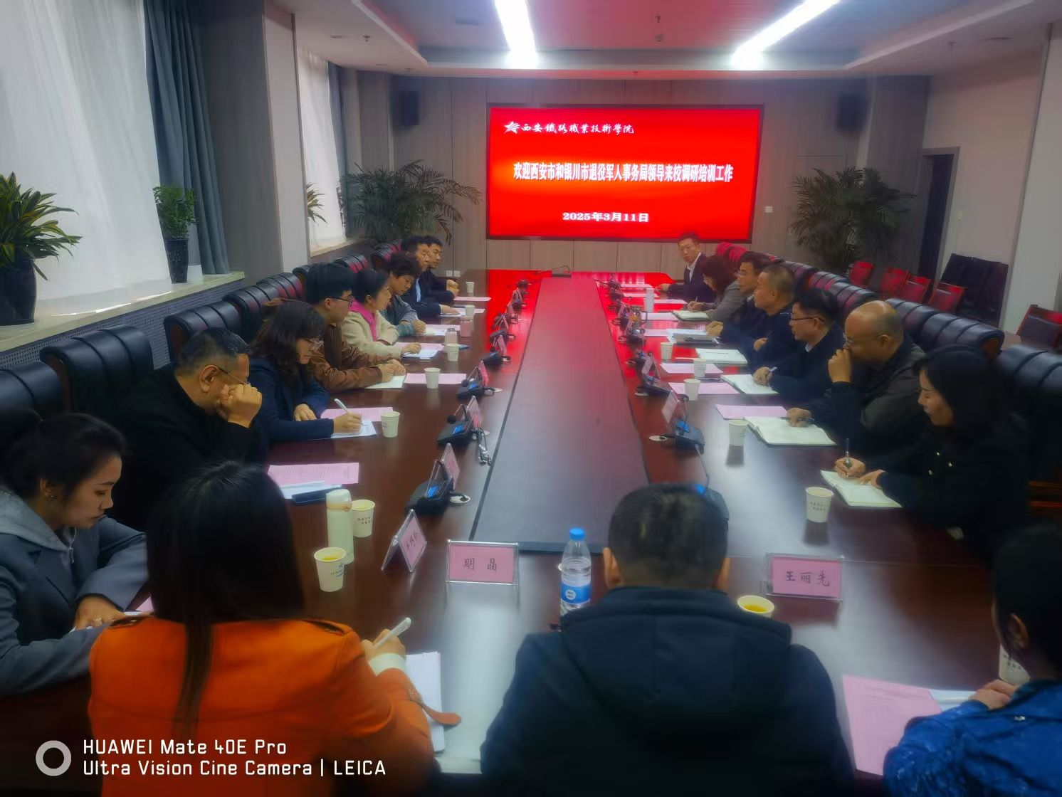 2025年3月11日,西安市退役军人事务局就业创业处处长姚战鹏,银川市退役军人事务局党组成员、副局长丁薇一行11人来我校调研退役军人职业技能培训工作,围绕退役军人教育培训、实训管理、服务保障等内容进行交流,深入探讨校地协同助力退役军人职业发展新路径。