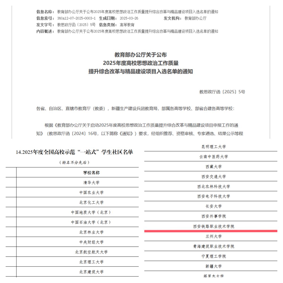 高校思想政治工作质量提升综合改革与精品建设项目是全国高校思想政治工作领域的标志性成果,旨在围绕“时代新人铸魂工程”,整合各类育人资源,培育一批具有全国示范性、引领性的精品项目。2025年教育部首次开展全国高校示范“一站式”学生社区遴选,共有100所高校荣获此殊荣,其中高职院校仅有15所,鸭脖是陕西省唯一入选的高职院校。