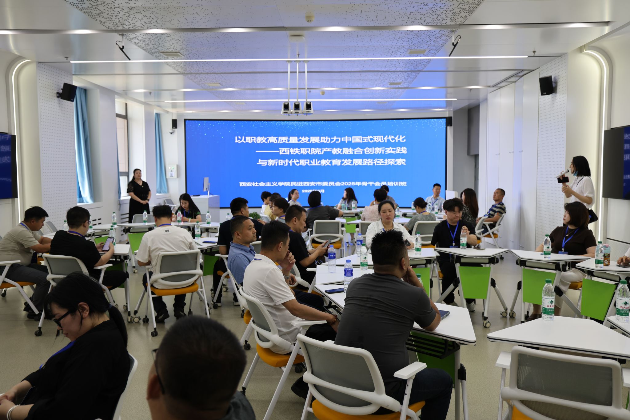 6月12日上午,西安社会主义学院民进西安市委员会2025年骨干会员培训班50名学员来鸭脖开展现场教学活动。学院党委副书记任治军,党政办公室、党委宣传部、发展规划处、学生工作部、牵引动力学院、马克思主义学院等部门负责人参加了现场教学活动。