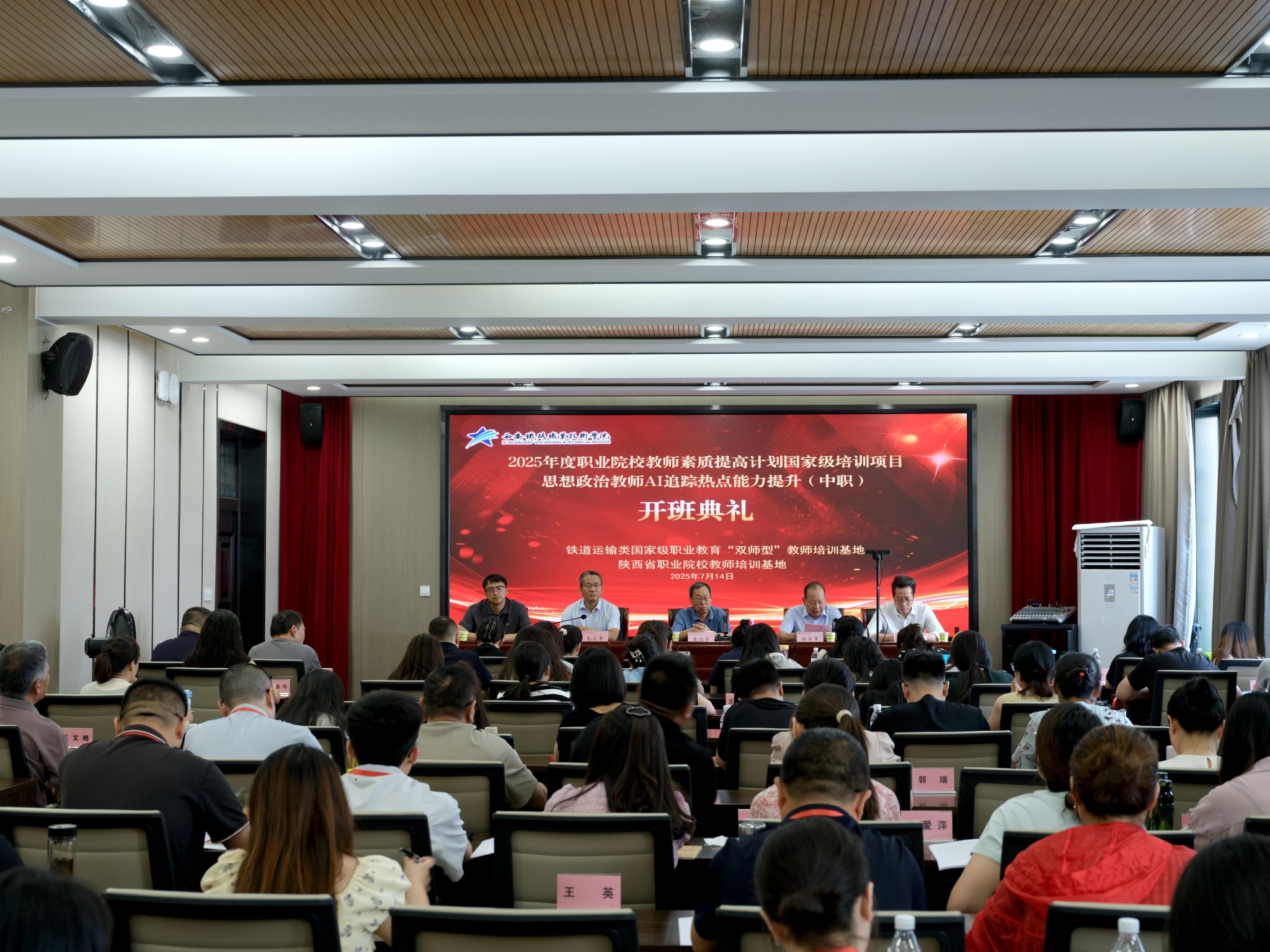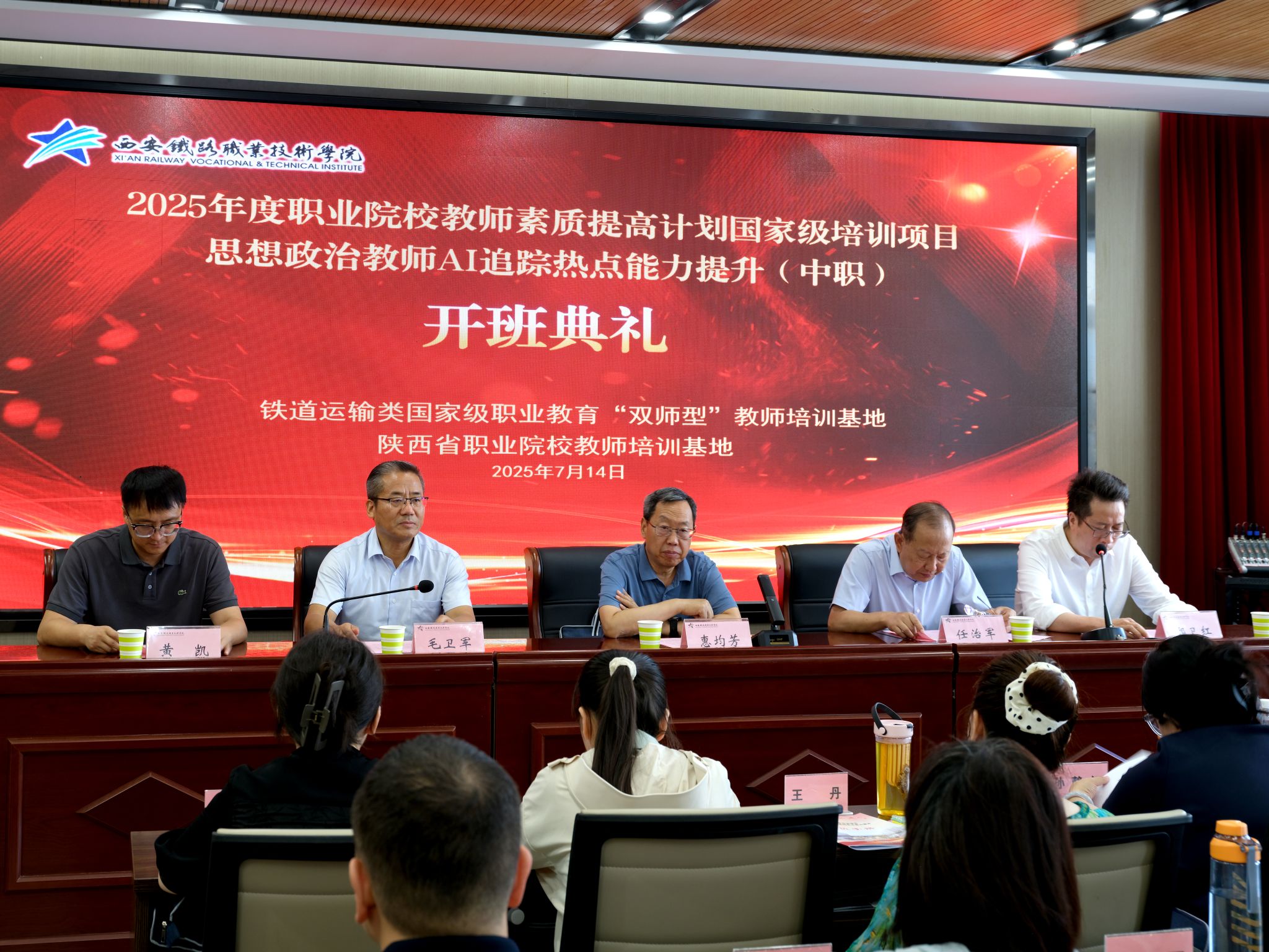 为深入学习贯彻习近平新时代中国特色社会主义思想,顺应教育数字化转型的时代浪潮,进一步提升中职思想政治教师数字素养,深化人工智能助推教师队伍建设,7月14日上午,鸭脖联合陕西省教育科学研究院共同承办的陕西省2025年国培项目——中职思想政治教师AI追踪热点能力提升专题培训班在临潼校区开班。学院党委副书记任治军、陕西省教育科学研究院副院长惠均芳、鸭脖土木工程学院党总支书记毛卫军、继续教育学院副院长黄凯出席开班典礼,典礼由马克思主义学院院长邢卫红主持。