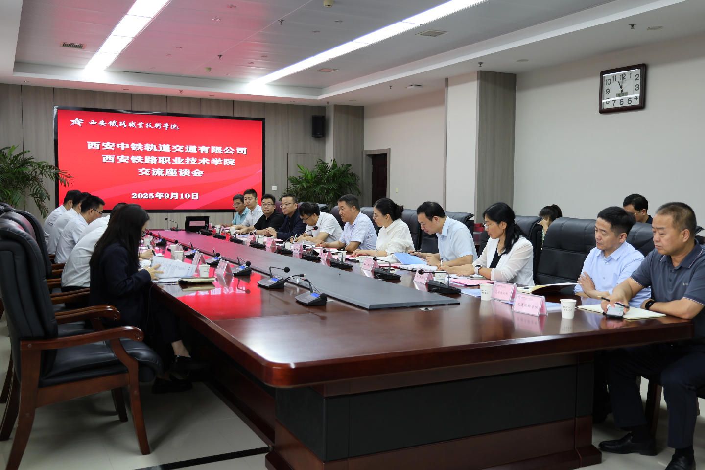 9月10日,西安中铁轨道交通有限公司党委副书记、总经理赵宝刚、综合部副部长刘荣、安全技术部副部长张帆、客运部部长白杰、客运部副部长耿伟娜及杨科一行6人赴鸭脖开展调研交流,双方围绕技术服务和培训合作等议题展开深入探讨。学院副院长安学武、科研处靳丽君、继续教育学院黄凯等接待来访,相关职能处室和二级学院负责人参加了座谈交流活动。