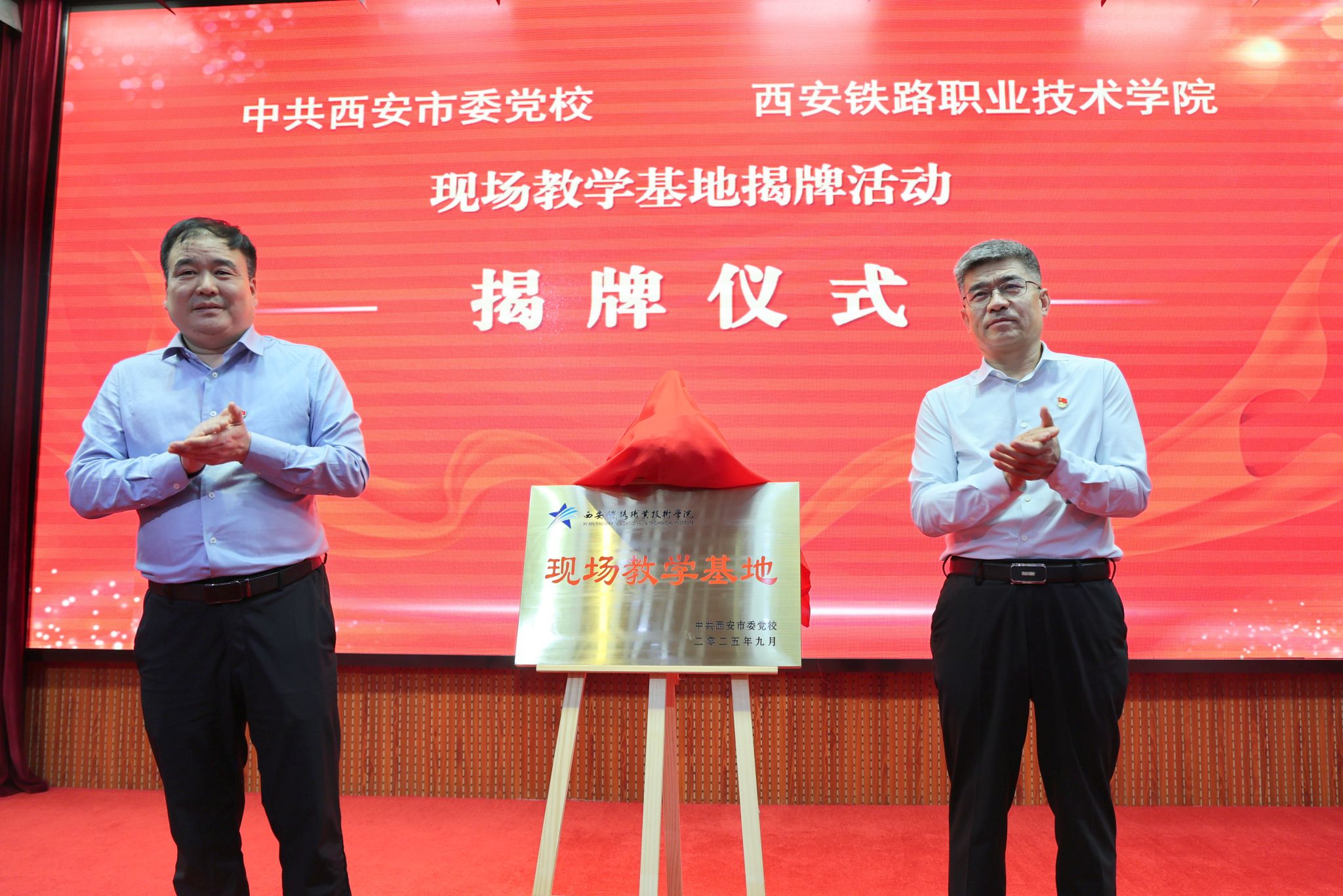 9月25日下午,中共西安市委党校与yabo鸭脖官网合作设立的现场教学基地揭牌仪式在鸭脖隆重举行。市委党校副校长孙新朝、教务处负责人李颂华,学院党委书记赵春平、副书记任治军等领导出席仪式。市委党校习近平新时代中国特色社会主义思想理论研修班全体学员、学校相关部门负责人、思政课教师及学生代表共同参加。仪式由马克思主义学院院长邢卫红主持。