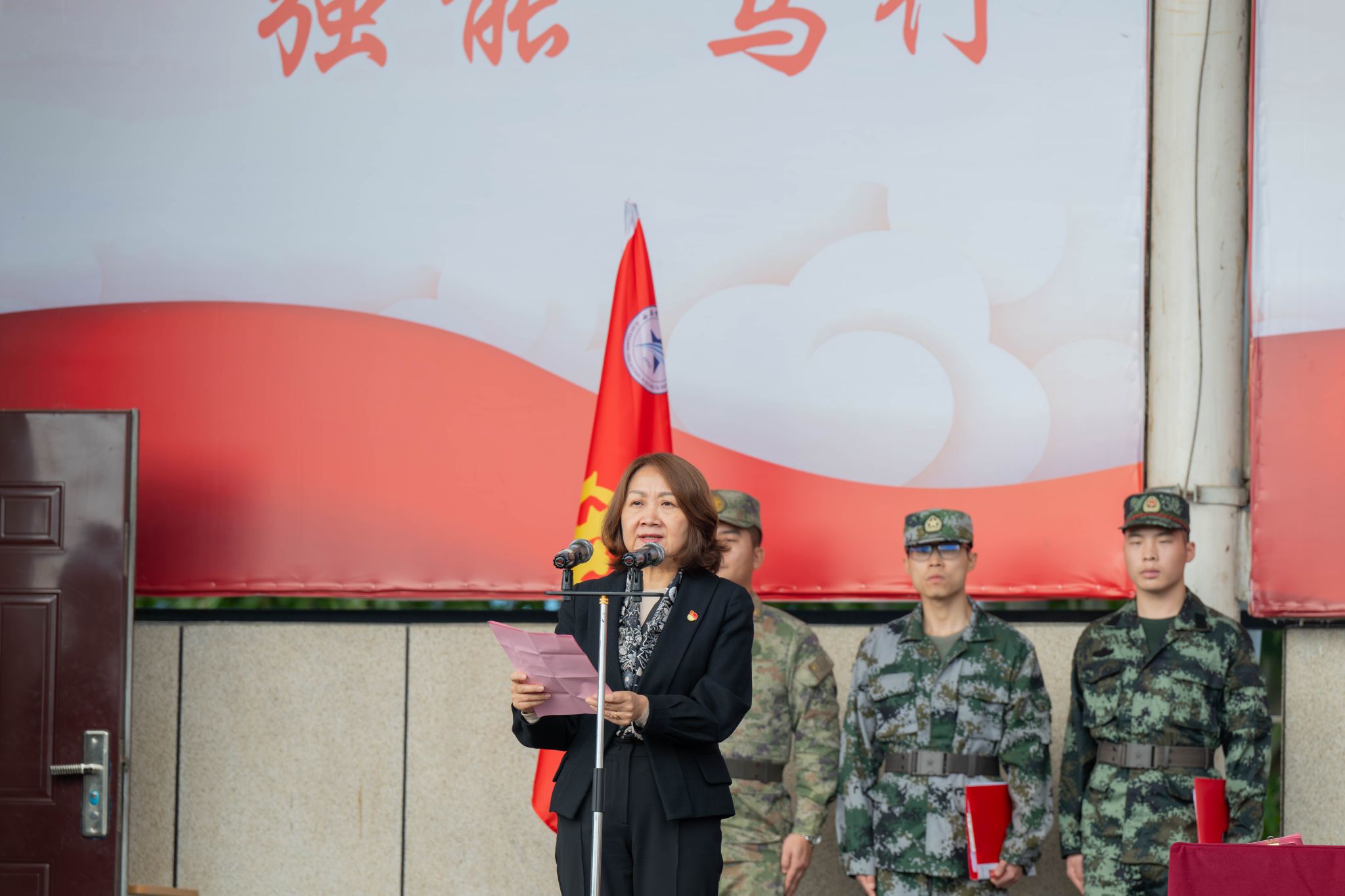 陈红代表学院全体师生,向 2025 级新生致以热烈欢迎,向承训教官表达崇高敬意。她指出,yabo鸭脖官网 70 年来始终坚守 “铁肩担当、匠心育人” 使命,累计培养 11 余万轨道交通及制造行业一线人才,培育出王小卫、樊刚等全国劳动模范与三秦工匠。她强调,“半军事化”管理是学院鲜明特色,而军训是新生从“校园人”迈向“职业人”的关键“第一课”,并对新生提出三点期望:以军训筑牢“纪律之基”,养成“令行禁止、零偏差零失误”的职业自觉,校准技能人才的“安全刻度”;以军训锤炼“坚韧之劲”,传承“反复钻研、精益求精”的匠心,为攻克一线技术难题积蓄动能;以军训凝聚 “协作之力”,领悟 “心往一处想、劲往一处使” 的团队精神,契合轨道交通行业岗位协作的核心需求。