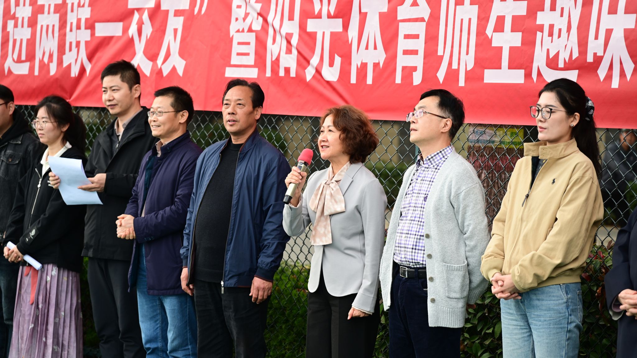 紧接着,张省伟宣读《阳光体育师生趣味运动会活动实施方案》。他讲到,为促使鸭脖学生走出宿舍,走出网络,走向操场,积极参加体育锻炼,鸭脖设置篮球比赛、趣味接力、团体协作等多个项目,既注重竞技性与趣味性的结合,更强调师生间的互动协作。他表示,阳光体育活动是“一站式”学生社区文化建设的重要组成部分,旨在引导师生走出宿舍、走出网络,在运动中释放活力,在协作中增进情谊,营造积极向上、健康文明的校园氛围。最后,陈红宣布本次活动正式开始。