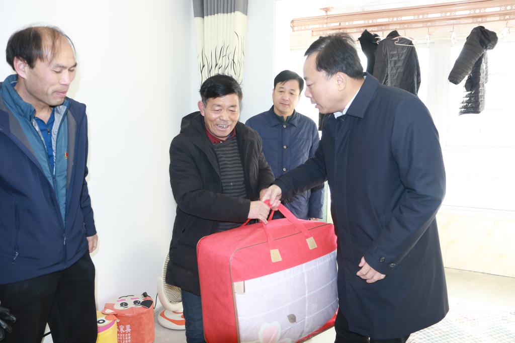 施利民一行首先来到辛口移民搬迁社区,在村民张宏有、李贵生家中实地检查搬迁准备及入住情况,并代表学院向他们送去了电磁炉、棉被等生活用品。在与群众座谈交流时,施利民向他们征求对学院驻村帮扶工作的意见和建议,并希望他们要尽快适应新的生活环境,努力学习新理念新知识,在县、镇党委和学院驻村工作队的帮助下,用辛勤劳动创造更好的生活。