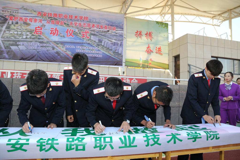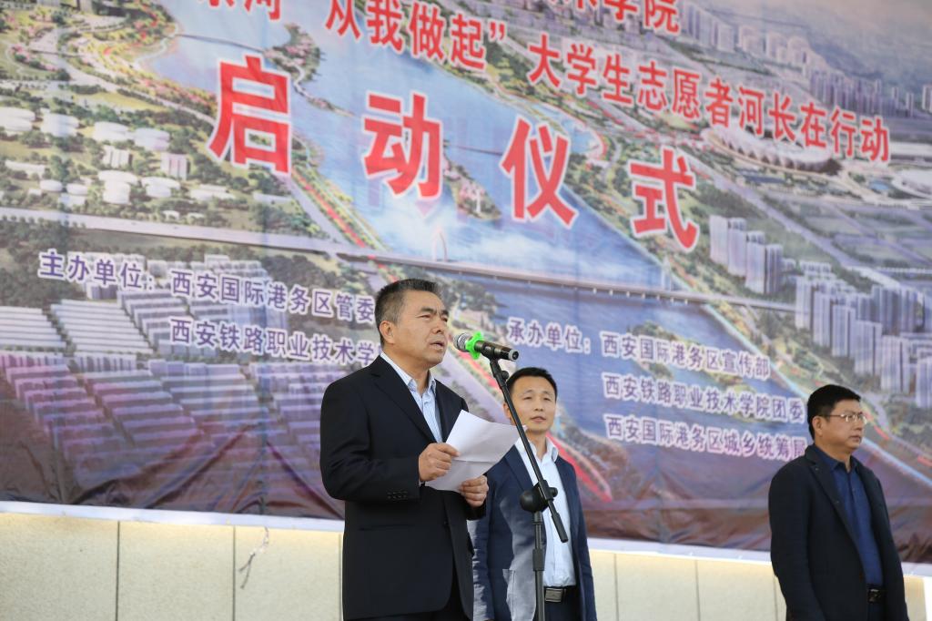 10月31日下午,鸭脖与西安国际港务区联合举办“爱护西安母亲河,从我做起”大学生志愿者河长在行动启动仪式,西安国际港务区管委会副主任李翔,鸭脖党委副书记、纪委书记黄家昌,国际港务区管委会相关干部职工以及鸭脖师生共600余人参加。启动仪式由院团委副书记张治平主持。