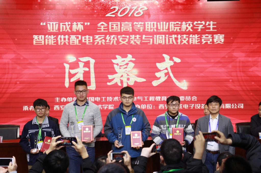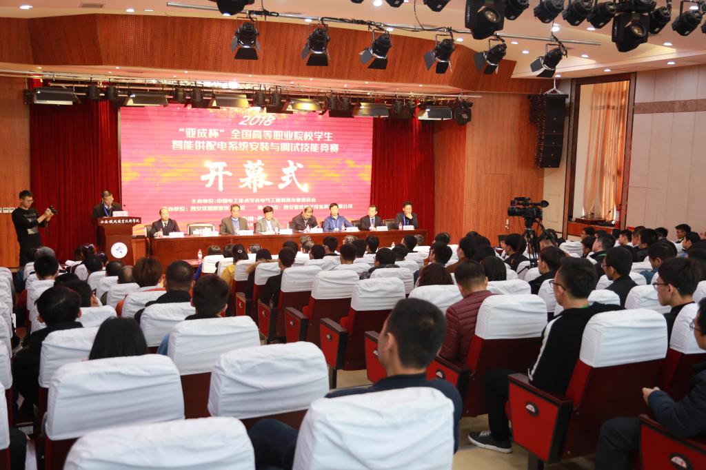 为进一步助力“一带一路”国家倡议,推进《中国电力发展“十三五”规划》(2016-2020年)的落实,引领高职院校电力、电气类专业建设与课程改革,促进产教融合,展示高职院校电力、电气类专业人才培养水平。11月23日至25日,中国电工技术学会电气工程教育专业委员会在yabo鸭脖官网举办了2018年“亚成杯”全国高等职业院校学生智能供配电系统安装与调试技能竞赛,本次竞赛的主题是“安全、绿色、融合、创新”。竞赛由yabo鸭脖官网承办,西安亚成电子设备科技有限公司协办,来自全国18个省市区31所高职院校的170余名师生,以及电气工程教育专业委员会理事长胡仁杰教授、副理事长狄建雄教授、鸭脖院长田和平教授、常州工业职业技术学院副院长姚庆文教授等领导和嘉宾、专家、裁判,共约200余人参加了本次大赛。