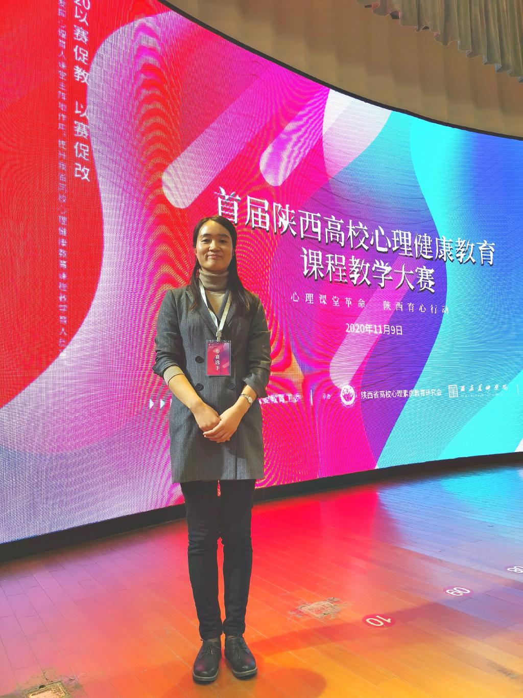 11月9日,首届陕西高校心理健康教育课程教学大赛在西安美术学院举行,马克思主义学院心理健康教研室李慧静老师代表鸭脖参加比赛,并喜获一等奖。