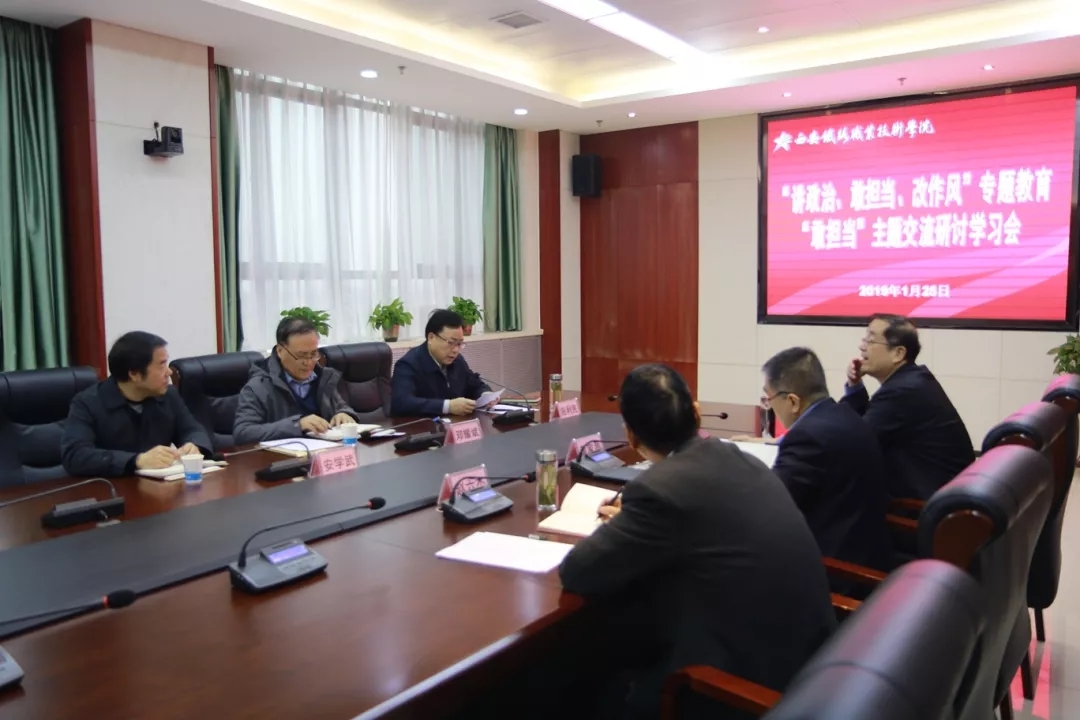 1月25日,yabo鸭脖官网以党委中心组扩大学习的形式召开“讲政治、敢担当、改作风”专题教育“敢担当”主题集中学习交流研讨会。学习会议由学院党委书记施利民主持,学院领导班子成员及全体处级干部参加。