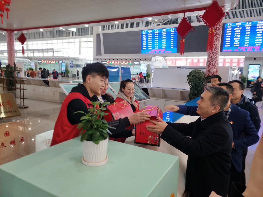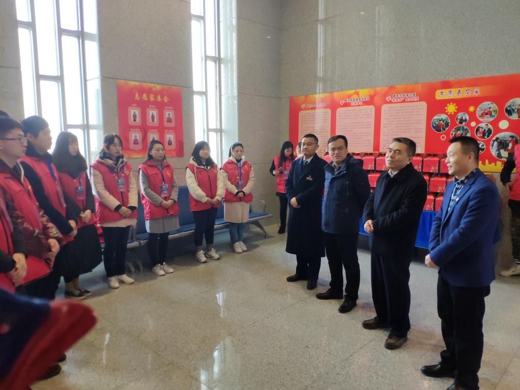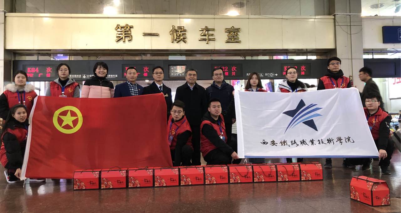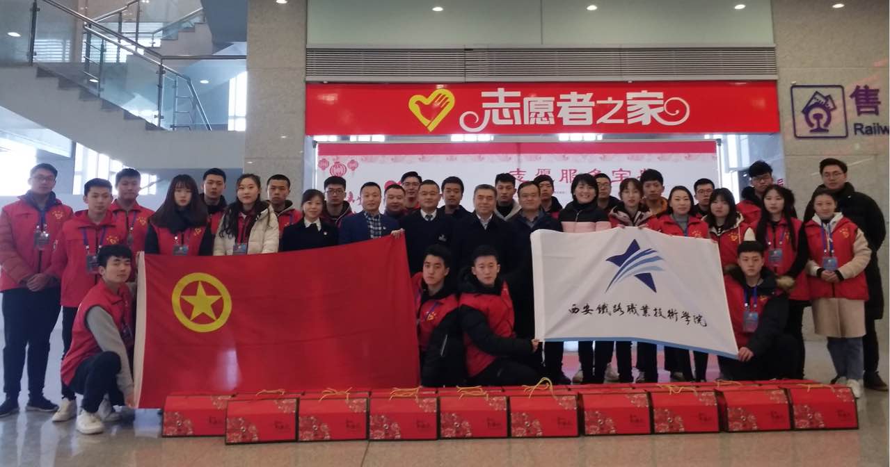 2月1日,临近春节,鸭脖党委副书记、纪委书记黄家昌带领学院团委相关人员在中国铁路西安局集团有限公司团委书记赵永的陪同下,先后来到西安站与西安北站亲切慰问了鸭脖寒假期间服务2019年春运“暖冬行动”的志愿者。
