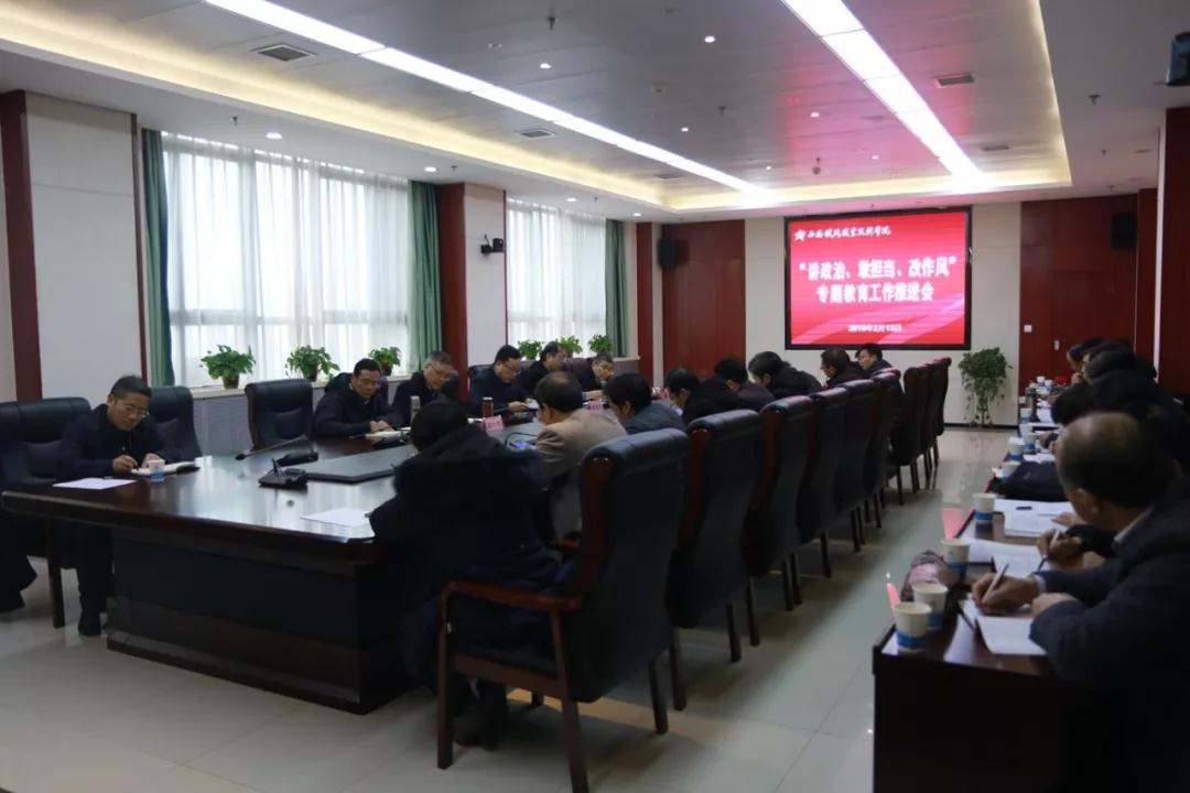 2月13日,yabo鸭脖官网党委书记施利民主持召开学院“讲政治、敢担当、改作风”专题教育工作推进会,学院领导班子成员、副处级以上干部参加会议。