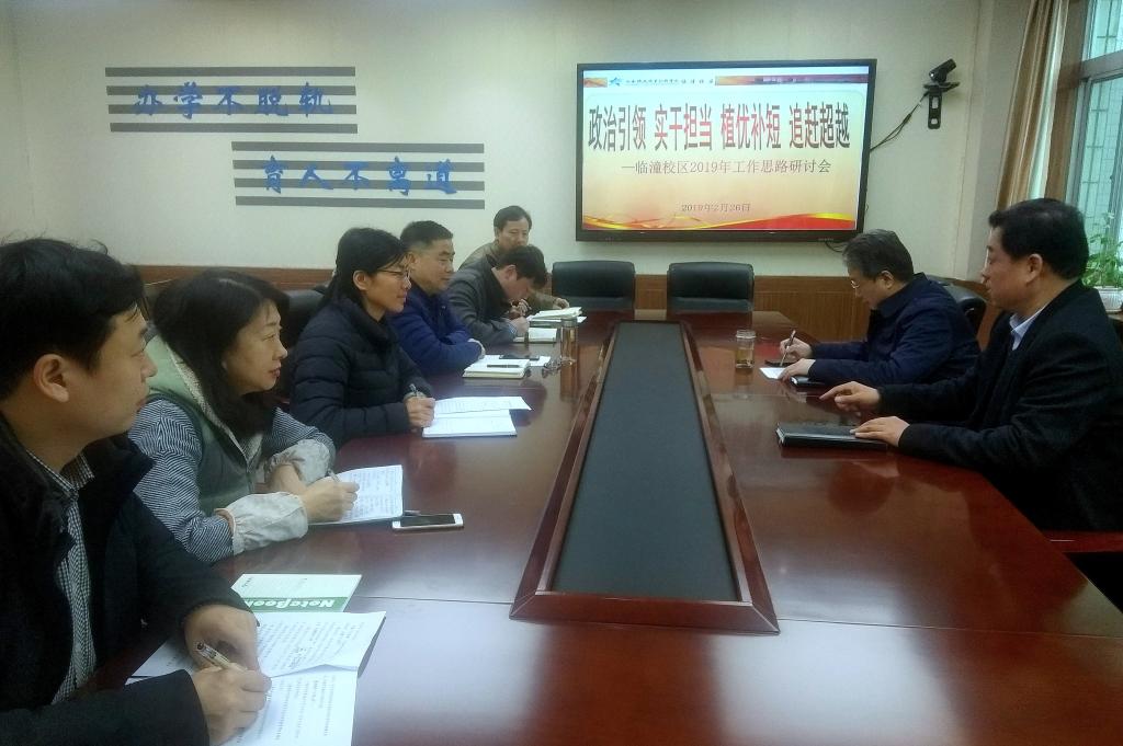 听取完汇报后,黄家昌充分肯定了近年来临潼校区整体工作,尤其在学生技能大赛、教师练功比武、学生管理教育、党群工作等方面取得的显著成绩,为助推学院发展做出了积极贡献。同时,黄家昌向校区领导干部提出了四点要求,一是要树立新思维,以新姿态、新面貌推动各项工作再上台阶;二是充分调动干部职工的工作热情和积极性,力争校区多出经验、创树品牌、走在前列;三是多深入一线调查研究,真抓实干补齐短板,不断提升管理服务水平;四是要继续抓好安全稳定工作,加强学生思想动态管理,确保全国两会期间学生的平稳有序。