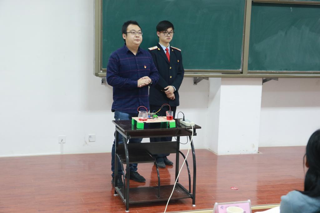 本次科普讲解大赛经各院部、处室推荐,共有17位选手参赛,赛前选手通过抽签的方式入场讲解。赛场上,选手们以生动的语言和形式多样的PPT向评委和师生们科普了“星际移民”“区块链”“清洁能源”“5G通信技术”“新零售”“尼阿底遗址”“数据泄露”等十余项科学知识。17位选手讲解结束后,教科研处特邀请机电工程学院教师史骏带领他指导的学生马迎新为大家展示了机电工程学院创新工作室的科技产品“4min给您的绿植建造一个舒适的家—一种盆栽自动灌溉装置制作简介”,该创新产品的演示深深吸引了评委和师生的注意力。